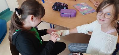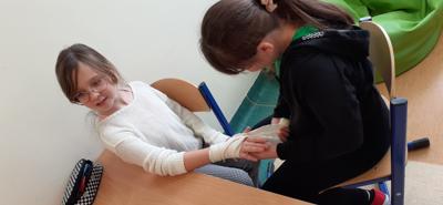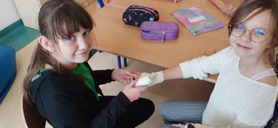 17 listopada klasa 4a uczestniczyła w zajęciach ratowniczych realizowanych w ramach projektu WOŚP "Ratujemy i uczymy ratować". Uczniowie uczyli się reagowania w sytuacji omdlenia, oceniania sytuacji i udzielania pierwszej pomocy. Wszystkie dzieci z zaangażowaniem ćwiczyły omówione sytuacje .