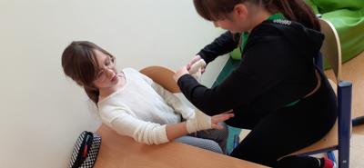 Udzielanie pierwszej pomocy, reagowanie w sytuacjach zagrożenia oraz wzywanie pomocy jest niezwykle ważne w codziennym życiu i może to zrobić każdy. 31 października klasa 7c uczestniczyła w zajęciach ratowniczych realizowanych w ramach projektu WOŚP "Ratujemy i uczymy ratować", które dotyczyły resuscytacji krążeniowo - oddechowej. Uczniowie uczyli się rozpoznania u poszkodowanego utraty funkcji życiowych oraz uciskania klatki piersiowej na fantomie.