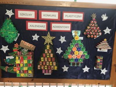 Dnia 6 grudnia 2024 roku podsumowano Szkolny Konkurs Plastyczny na ,,Kalendarz Adwentowy”. Do konkursu zgłoszono 15 prac plastycznych wykonanych różnymi technikami. Komisja konkursowa przyznała następujące miejsca: