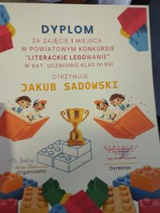 Jakub Sadowski otrzymał 1 miejsce w kategorii klas IV- VIII!