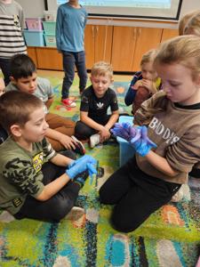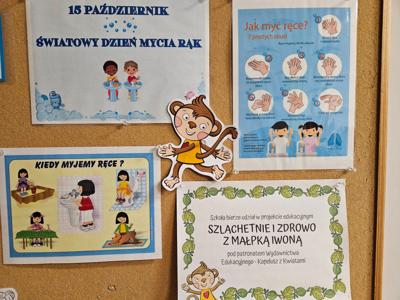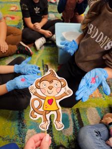 15 października obchodzimy Dzień Mycia Rąk. Małpka Iwonka przypomniała nam jak ważna jest higiena dla naszego zdrowia i dobrego samopoczucia oraz jak łatwo przenosić zarazki brudnymi rączkami. Dzieci wzięły udział w eksperymencie, dzięki któremu przekonały się jak wielką moc ma mydło i woda w walce z brudem. Okazało się, że sam papier ani nawet mokre chusteczki nie dają takich efektów jak dokładne umycie rąk pod bieżącą wodą z mydłem. Podczas eksperymentu z rękawiczkami i farbą, świetliczaki miały okazję sprawdzić czy aby na pewno potrafią dokładnie umyć rączki. Wszyscy zdali test wzorowo!