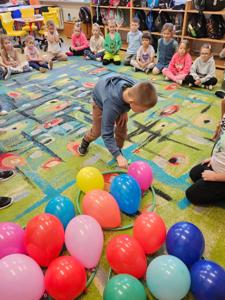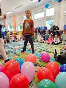 7 października pasowanie na świetliczaka przyjęła ostatnia z klas pierwszych, klasa pierwsza b. Przyjęcie do grona świetlicowego nastąpiło poprzez wykonanie określonych zadań, rozwiązywanie zagadek, próby zręcznościowe. Dzieci bardzo chętnie brały udział w zabawach i pozytywnie przeszły wszystkie próby oraz wykazały się znajomością regulaminu świetlicy. Wszyscy uczestnicy dobrze się bawili i zasłużyli na miano świetliczaka. Każdy otrzymał medal oraz smaczny upominek.