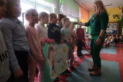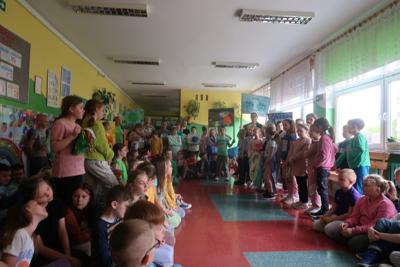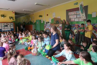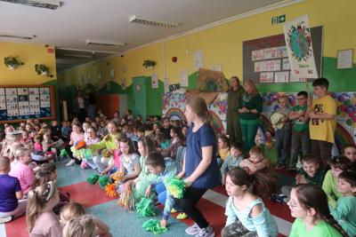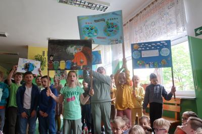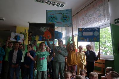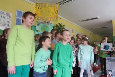Dzień Ziemi to najważniejsze święto ekologiczne, którego celem jest promowanie postaw ekologicznych, uświadomienie jak kruchy jest ekosystem planety ludzi. Hasłem przewodnim tegorocznej akcji jest „Planeta kontra tworzywa sztuczne” Z tej okazji 22 kwietnia uczniowie klas 1-3 uczestniczyli we wspólnym spotkaniu ekologicznym zakończonym happeningiem. Uczniowie ubrani byli w kolory Ziemi, a więc na żółto, zielono, niebiesko i brązowo. Wykonane samodzielnie transparenty informowały o potrzebach naszej planety i sposobach dbania o nią. Każda klasa zaprezentowała piosenkę, taniec, wiersz lub hasła ekologiczne. Następnie barwnym korowodem wśród haseł i okrzyków w ochronie Ziemi przemaszerowaliśmy ulicami miasta.