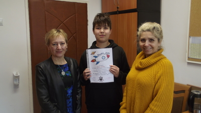 Jest mi niezmiernie miło poinformować, iż uczeń naszej szkoły - Borys Kiełbus z kl. 7a, zajął I miejsce w powiatowym konkursie polonistycznym w formie lapbooka „Na spotkanie innych światów - życie i twórczość Stanisława Lema” zorganizowanym przez Szkołę Podstawową nr 7 im. Stanisława Staszica w Głogowie. Jego praca została pomysłowo zaplanowana i perfekcyjnie wykonana, co znalazło uznanie w oczach jury.