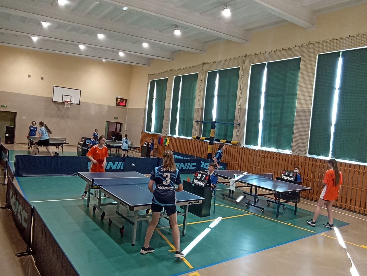Dnia 28 lutego w Szkole Podstawowej nr 13 rozegrane zostały turnieje w tenisie stołowym dziewcząt i chłopców w ramach Igrzysk Młodzieży Szkolnej. Organizatorem etapu miejskiego był Miejski Szkolny Związek Sportowy w Głogowie. Naszą szkołę reprezentowali w kategorii dziewcząt : Oliwia Ciećko i Maja Rogowska z klasy 8b, a w kategorii chłopców : Michał Nadała z 7g, Bartek Serafin z 7f oraz Wiktor Kostrzewiński z 7a. W kategorii dziewcząt zagrały reprezentacje z czterech głogowskich podstawówek : SP 6, SP 7, SP 10 i SP 13, a w kategorii chłopców reprezentacje z pięciu szkół : SP 2, SP 6, SP 7, SP 10 i SP 13. Dziewczęta i chłopcy zagrali mecze singlowe oraz deble, a poziom gry jaki reprezentowali uczniowie głogowskich podstawówek był bardzo dobry, stąd wyrównane mecze.