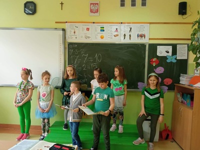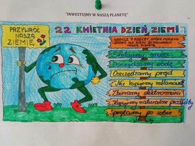 Organizacją tego dnia zajęli się nasi najmłodsi uczniowie z klas 1 a i 1 b. Podjęli jeszcze raz wyzwanie przypomnienia sobie nawzajem, jak ważne jest nasze proekologiczne postępowanie w codziennym życiu. Przedstawili sposoby pomocy i ratunku naszej planety. Zorganizowali także konkurs na plakat promujący ekologiczny styl życia. Na koniec przekazali apel MATKI ZIEMI: