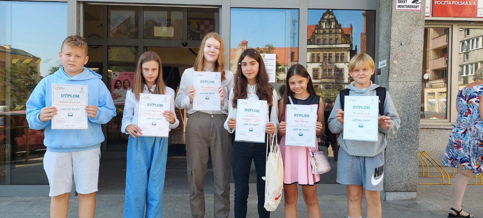 W czerwcu 2023r, nasi uczniowie z klasy 5b (6 uczniów) i 5a ( 1 uczennica) wzięli udział w etapie okręgowym 7. edycji konkursu pod patronatem Senatu „List do Taty”. Zadaniem uczestników, było napisanie listu do ojca (żyjącego, zmarłego lub ojczyma) o tym, jak ważny jest w jego życiu lub o tym, co chciałby mu powiedzieć. Jury, pod przewodnictwem senator Doroty Czudowskiej, organizatora tego etapu wyłoniło spośród prac laureatów.