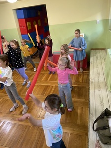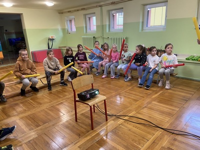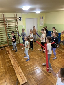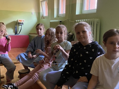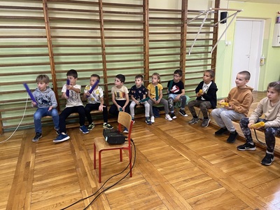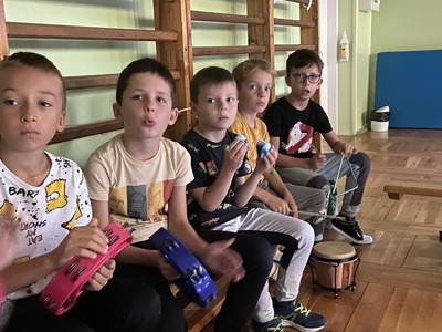 2 i 4 października dla uczniów klas 1-3 odbyły się pierwsze w tym roku zabawy muzyczno-rytmiczne prowadzone przez profesjonalnych muzyków. Na tych zajęciach uczniowie przede wszystkim uczą się grać na różnorodnych instrumentach perkusyjnych i śpiewają piosenki karaoke . Uczą się współpracy w grupie, poprawiają swoją koordynację ruchową, a także rozwijają słuch muzyczny.Zabawy te uczą dyscypliny rytmicznej, rozwijają poczucie rytmu, a także wpływają na wzmożoną koncentrację u dzieci. Uczniowie bardzo je lubią i z chęcią biorą w nich udział.