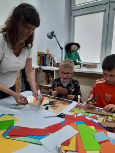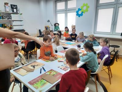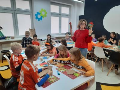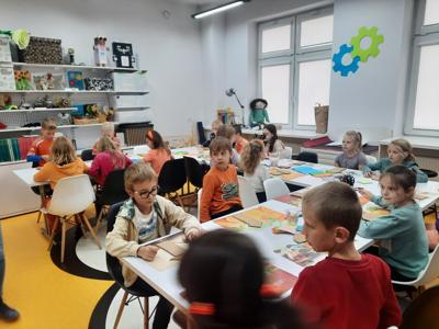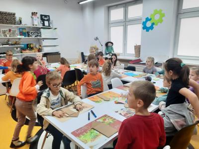 W ubiegły piątek uczniowie klasy 2 wzięli udział w warsztatach literackich w Miejskiej Bibliotece Publicznej BLOG. Dzieci poznały utwór Aleksandra Fredry "Paweł i Gaweł". Mali goście biblioteki zgodnie stwierdzili, że warto być uprzejmym dla swoich sąsiadów. Na koniec zaprojektowali i ozdobili domy według własnych pomysłów.