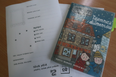 Czy Lassemu i Mai uda się rozwiązać zagadkę? Tego dowiecie się po przeczytaniu książki "Tajemnica diamentów" Martina Widmarka. Na zajęciach każdy robił rysopis podejrzanego i zbierał odciski palców.