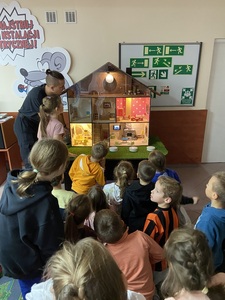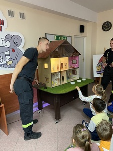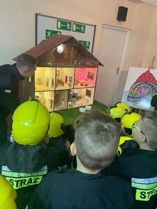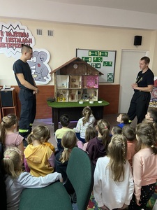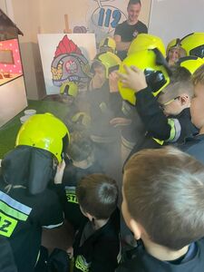 W dniach 26.10. 2023r. i 9.11.2023r. uczniowie klasy II a oraz II c wybrali się do Komendy Powiatowej Straży Pożarnej w Głogowie na zajęcia w sali edukacyjnej „Ognik”. Uczniowie z wielkim zaciekawieniem uczestniczyli w spotkaniu, podczas którego poznali specyfikę pracy strażaków oraz niektóre sprzęty jakimi dysponują. W trakcie zajęć dzieci uczyły się między innymi prawidłowych zachowań w sytuacjach zagrożenia życia, zasad bezpiecznej ewakuacji oraz prawidłowego wzywania służb ratowniczych. Wielką radość dzieciom sprawiła możliwość przymierzenia munduru i hełmu strażackiego. Udział w zajęciach dał również dzieciom możliwość zobaczenia jak się rozprzestrzenia pożar w domu. Uczniowie dowiedzieli się jak trudna, odpowiedzialna i niebezpieczna jest praca strażaków. Zrozumieli , że strażak pomaga nie tylko w czasie pożaru, ale bierze także udział w akcjach ratowniczych, np. w czasie wypadku drogowego czy powodzi. Spotkanie ze strażakami wywarło na uczniach duże wrażenie. Składamy serdeczne podziękowania pracownikom Powiatowej Straży Pożarnej w Głogowie za wspaniale przeprowadzone spotkanie.