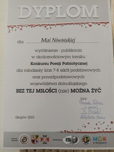 naszej szkoły – Maja Niwińska z kl. 7b. Jej wiersze zostaną opublikowane w