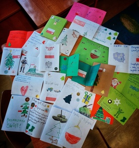zaangażowaniem tworzyli kartki Bożonarodzeniowe ze słowami wsparcia i otuchy dla żołnierzy,