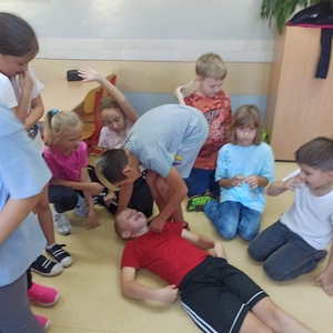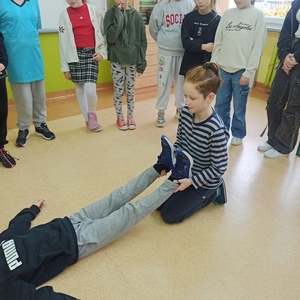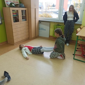 17 listopada klasa 4a uczestniczyła w zajęciach ratowniczych realizowanych w ramach projektu WOŚP "Ratujemy i uczymy ratować". Uczniowie uczyli się reagowania w sytuacji omdlenia, oceniania sytuacji i udzielania pierwszej pomocy. Wszystkie dzieci z zaangażowaniem ćwiczyły omówione sytuacje