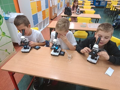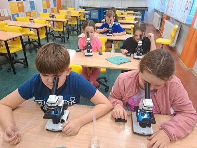 W zajęciach koła przyrodniczego w szkole, biorą udział uczniowie z klas IV.