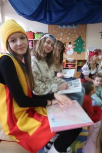zainteresowaniem wysłuchały opowiadań: „Jaś i Fiu Fiu”, „Krótkowzroczna żyrafa”, „Alberta szuka miłości”, „Kurczaczek i sekret dobrego snu”, „Nieustraszona babcia Adela i kosmiczna przygoda”, „Marysia na basenie”, „Bajki o zwierzętach” oraz „Maks i niezwykłości”. Dzięki takim spotkaniom uczniowie mogą ćwiczyć sztukę pięknego czytania, a małym odbiorcom sprawić ogromną radość. Czytanie uczy myślenia, pobudza wyobraźnię, rozwija wrażliwość i rozwój intelektualny i jest wspaniałą przygodą.
