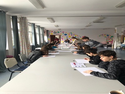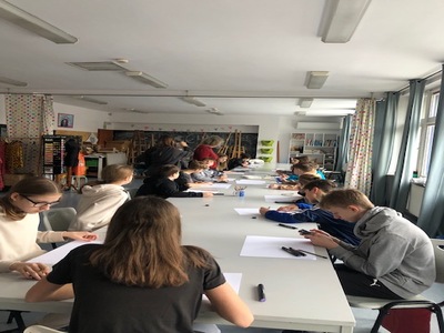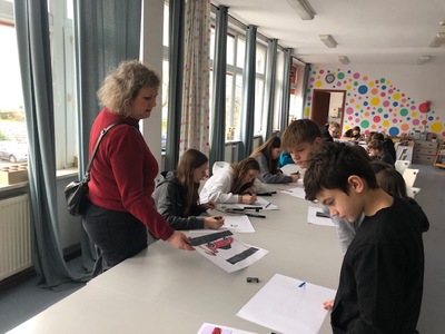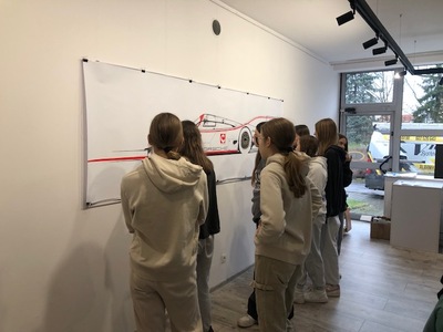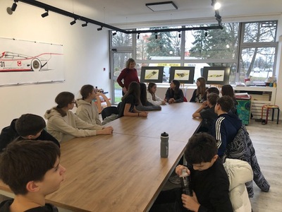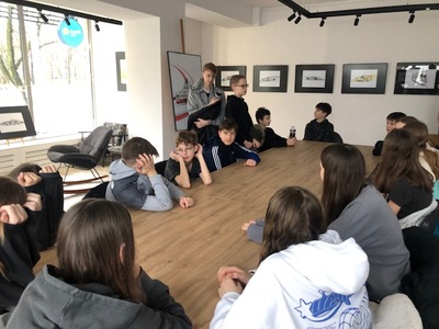 Dnia 21 lutego klasa 6a uczestniczyła w lekcji plastyki zorganizowanej przez Miejski Ośrodek Kultury oraz Galerię Edukacji Twórczej prowadzoną przez panią Joanne Kinder. Zajęcia miały charakter edukacyjny. Uczniowie zapoznali się z pracami arytsty plastyka, projektanta wzornictwa pana Wojciecha Karolczaka.Tematyką wystawy są rysunki graficzne samochodów wyścigowych z różnych epok, artysta w swoich pracach podkreslił dynamikę, formę oraz wykorzystał zderzenie plam koloru z czernią. Po zapoznaniu sie z pracami artysty uczniowie spróbowali swoich sił w tworzeniu swoich prac graficznych, których tematem przewodnim była omawiana motoryzacja. Ponadto uczniowie mieli możliwość zapoznania się z twórczością arystów naszego miasta,obrazami, które prezentowane są w holu MOK.