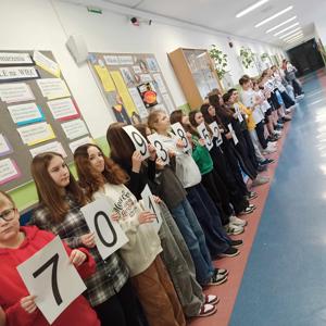 14 marca obchodzony jest Światowy Dzień Liczby Pi. W ramach obchodów tego dnia społeczność naszej szkoły wzięła udział w akcji na jak najdłuższe rozwinięcie liczby Pi. Dyrekcja szkoły oraz uczniowie klas 4-6 wraz z wychowawcami ustawili się w odpowiedniej kolejności na korytarzach szkoły, trzymając kartkę z kolejną cyfrą rozwinięcia liczby Pi. Z tego wydarzenia został nakręcony film, który można obejrzeć na profilu szkoły na Facebooku: https://fb.watch/qOBoPqJKs-/. Uczniowie klas 7 i 8 wzięli udział w kreatywnych warsztatach dotyczących wykorzystania liczby Pi. Korytarze szkoły zdobiły tego dnia plakaty dotyczące Liczby Pi przygotowane przez uczniów. Dziękujemy za nauczycielom matematyki oraz Samorządowi Uczniowskiemu za organizację akcji.