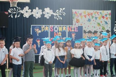 Pięknie przystrojona sala gimnastyczna, życzliwe twarze rodziców, nauczycieli i szkolnych kolegów, poczet sztandarowy i odśpiewanie hymnu państwowego – w takich okolicznościach pierwszaki zostały przyjęte do