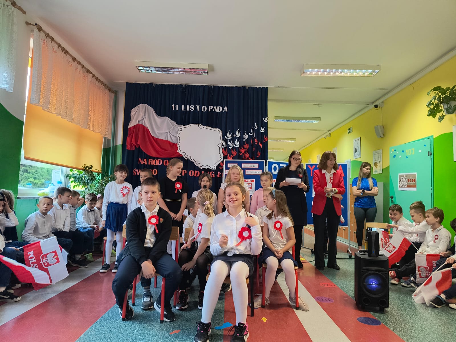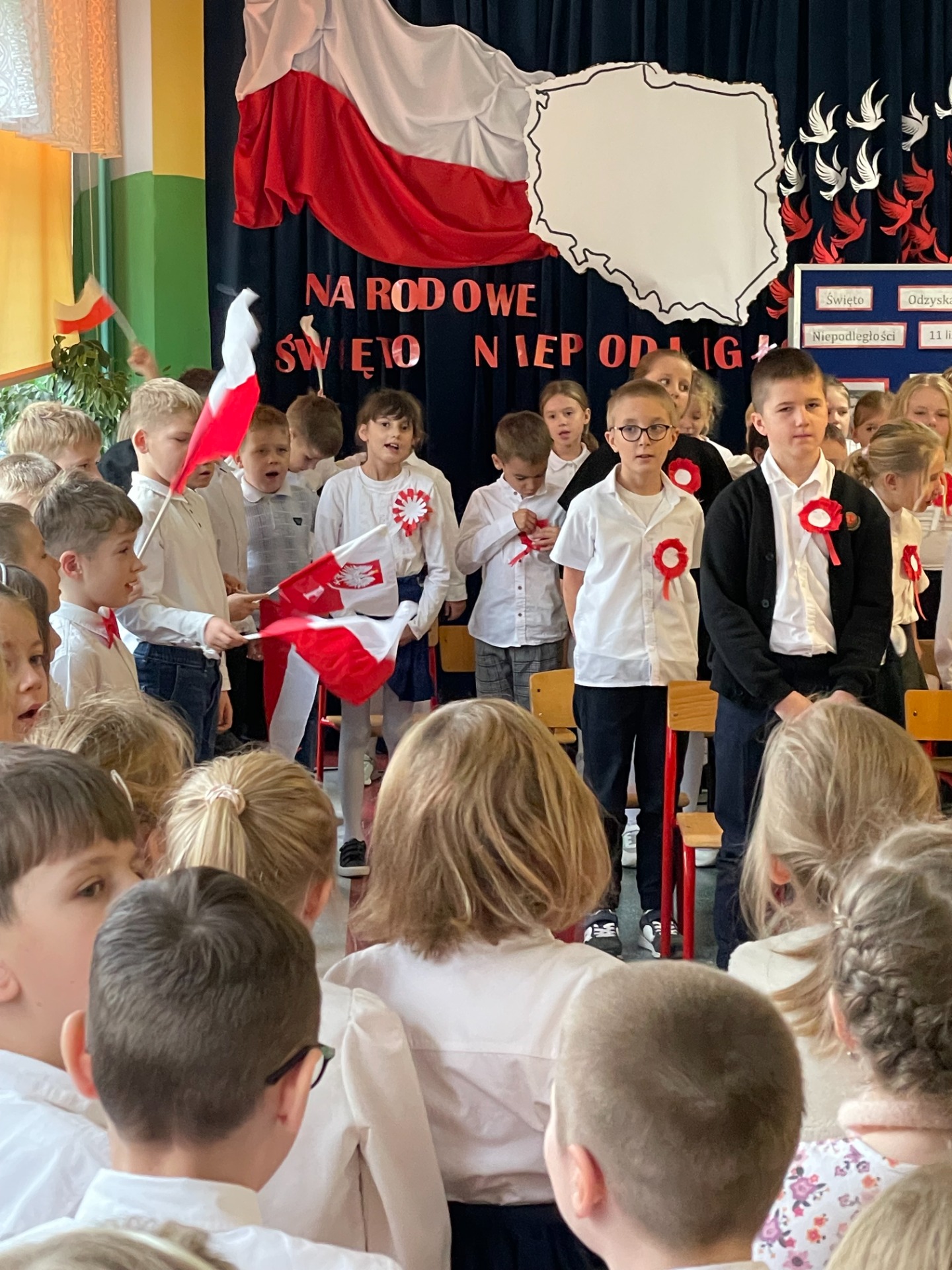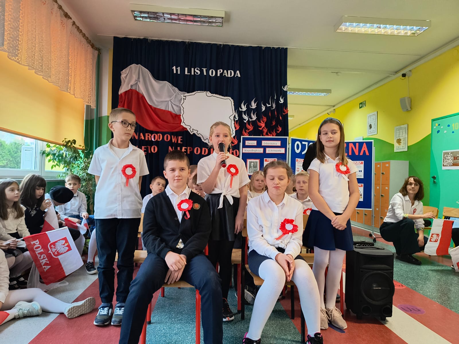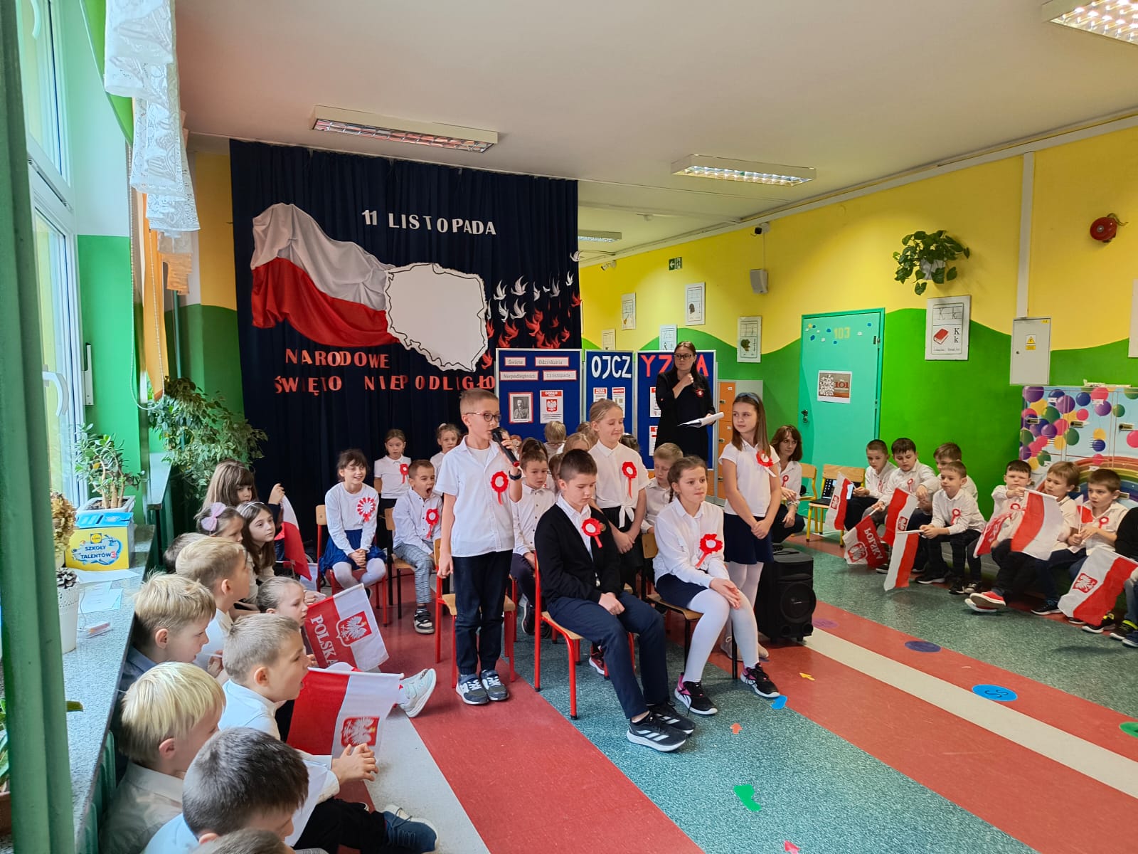 W listopadzie 1918 r. spełniły się marzenia o niepodległości, którą Polacy usiłowali odzyskać od 123 lat. Uroczysty apel dla uczniów edukacji wczesnoszkolnej, odbył się 7 listopada. Uczniowie klas Ia, Ib i IIId przedstawili montaż słowno – muzyczny, upamiętniający odzyskanie przez Polskę niepodległości. Utwory poetyckie zaprezentowane przez uczniów oraz pieśni patriotyczne, wprowadziły wszystkich w podniosły i patriotyczny nastrój. Kolejny raz przeżyliśmy wzruszenie i radość z faktu, że nasza Ojczyzna powróciła na mapę Europy.