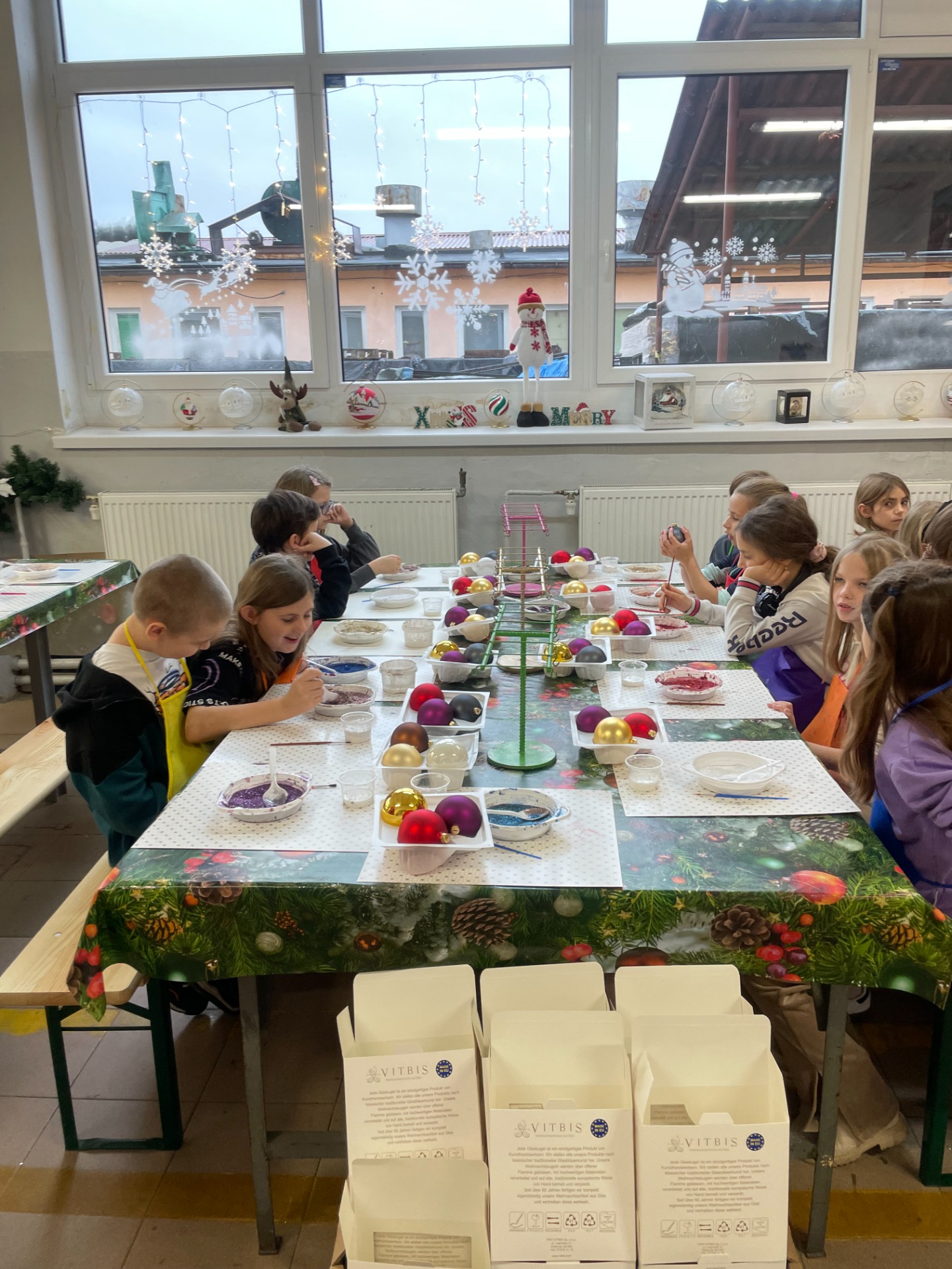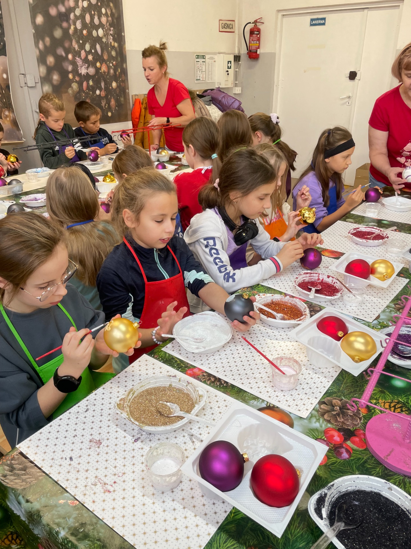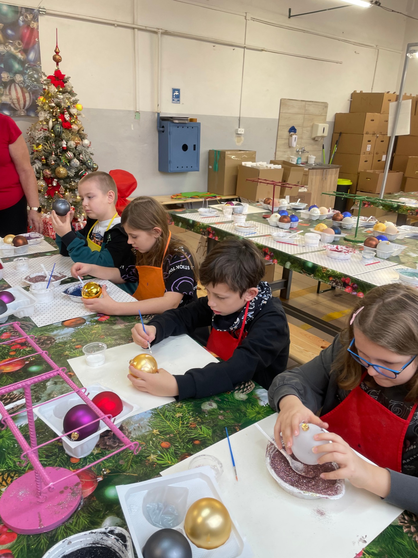 Wycieczka miała na celu zwiedzanie fabryki, w której produkcja bombek odbywa się ręcznie, a także zapoznanie dzieci z procesem powstawania ozdób choinkowych. Zwiedzanie fabryki obejmowało cały proces wytwórczy, począwszy od szklanej rurki do uzyskania ręcznie malowanych, pięknie zdobionych bombek, jakie można zakupić w sklepach. Na koniec wycieczki przygotowano dla wszystkich dzieci warsztaty z samodzielnego ozdabiania bombek. Każdy uczeń mógł ozdobić trzy bombki i zabrać je ze sobą do domu. Zrobiliśmy również zakupy w przyzakładowym sklepie , podczas których dzieci mogły samodzielnie wybrać ozdoby i sprawdzić swoje umiejętności matematyczne związane z obliczeniami pieniężnymi.