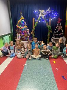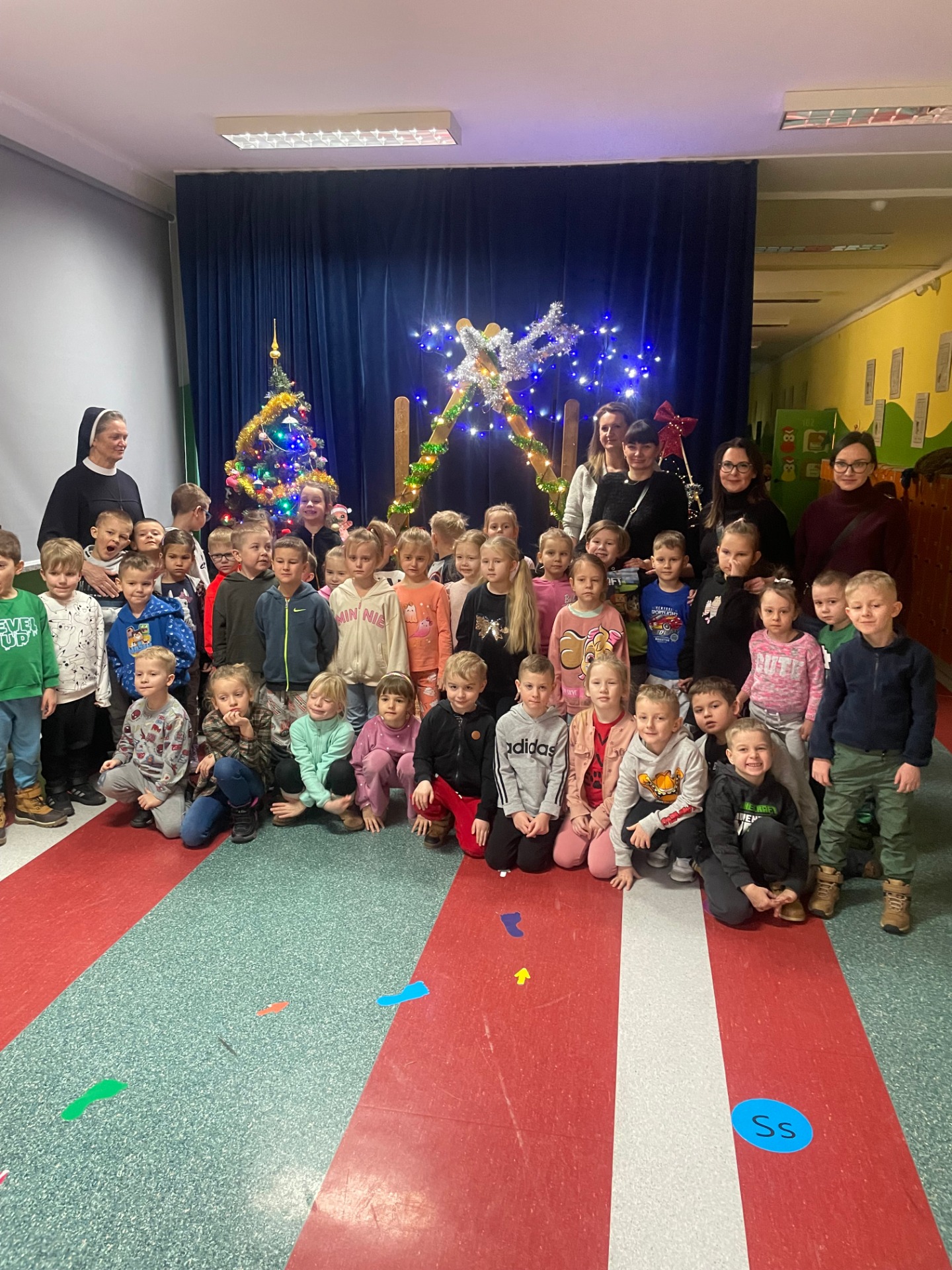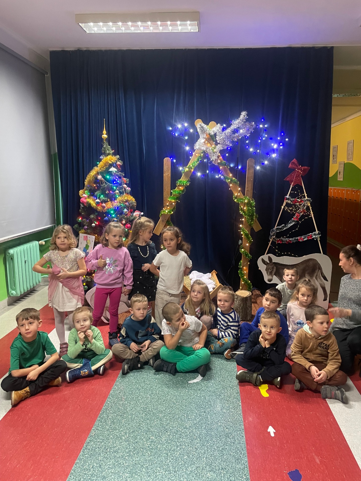 16 stycznia ponownie gościliśmy w naszej szkole dzieci z pobliskich przedszkoli. Tym razem przedszkolaki obejrzały i wysłuchały Jasełek w wykonaniu uczniów klasy 3b i 3c. Maryja, Józef, dzieciątko Jezus, a wokół pasterze, królowie oraz bielutkie aniołki, to główni bohaterowie jasełek. Było to niezwykłe doświadczenie, bo przedszkolaki wraz z uczniami podczas występu śpiewały kolędy oraz piosenki świąteczne. Inscenizacja oraz piękne układy taneczne w wykonaniu małych artystów w pięknej scenerii dostarczyła widzom niezapomnianych wrażeń. Przybyli goście nagrodzili artystów gromkimi brawami.