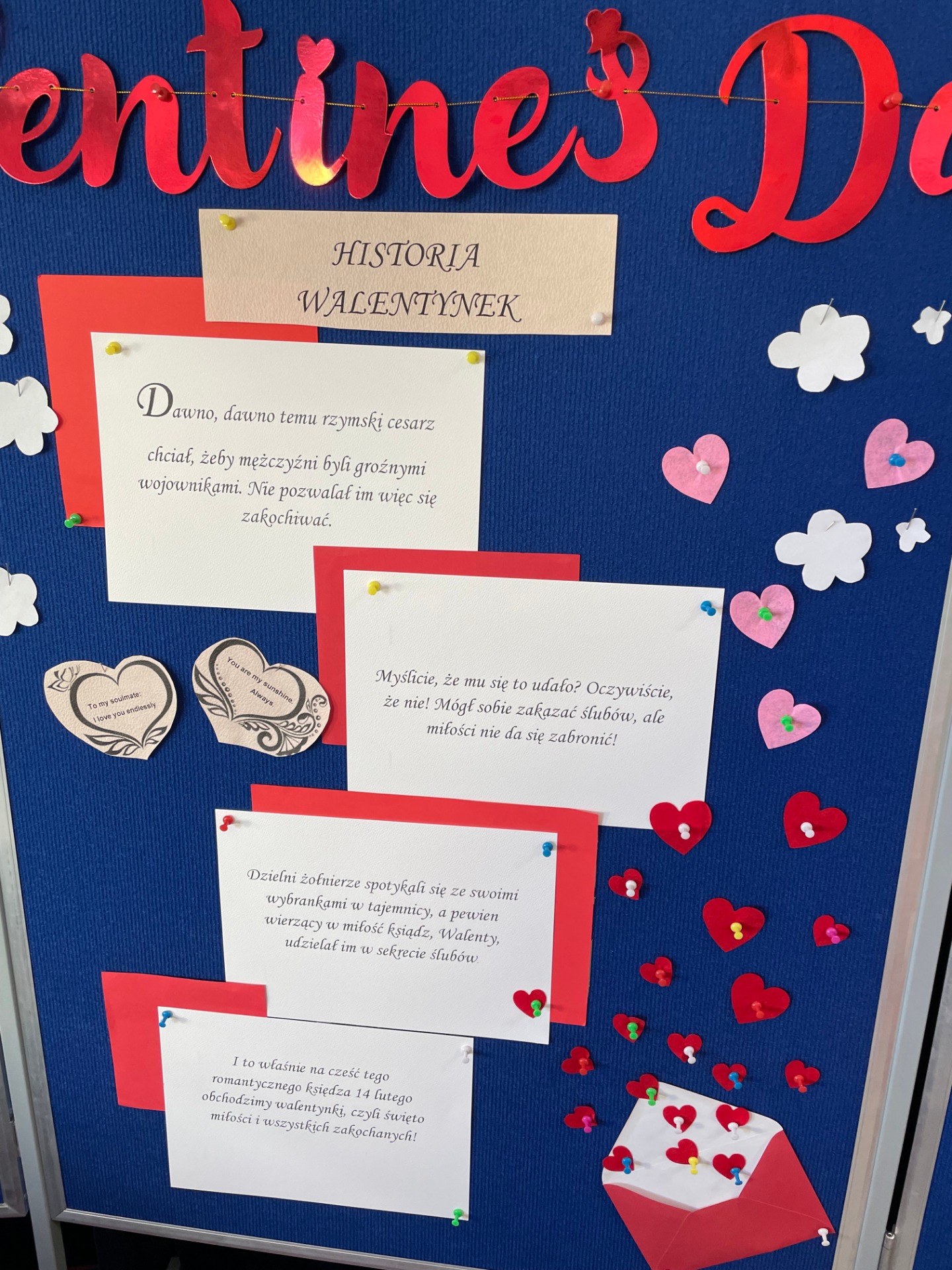 Uczniowie naszej szkoły, przywitali nowy semestr w Walentynkowym nastroju! Na przerwach mieli okazję zapoznać się z historią Walentynek, nauczyć się, powtórzyć lub przypomnieć sobie słowa w j. angielskim związane z tym dniem oraz rozwiązać szereg ciekawych zadań, które nie tylko bawiły ale również uczyły naszych podopiecznych. Za każde rozwiązane zadanie uczniowie nagradzani byli naklejkami. Przerwy przebiegły w miłym i radosnym nastroju , a dzieci były zaangażowane i chętnie podejmowały wyzwania. Nadal chcemy szerzyć znajomość kultury innych krajów, a przede wszystkim atmosferę ciepła i radości wśród naszych uczniów.