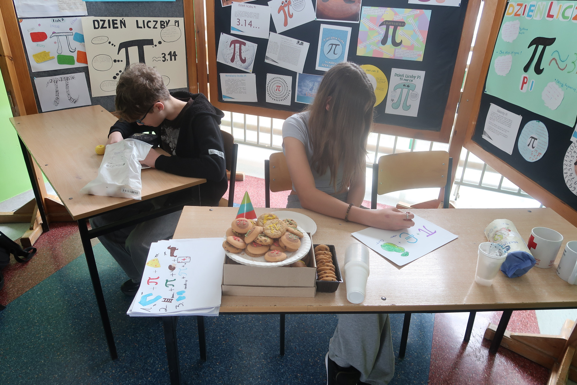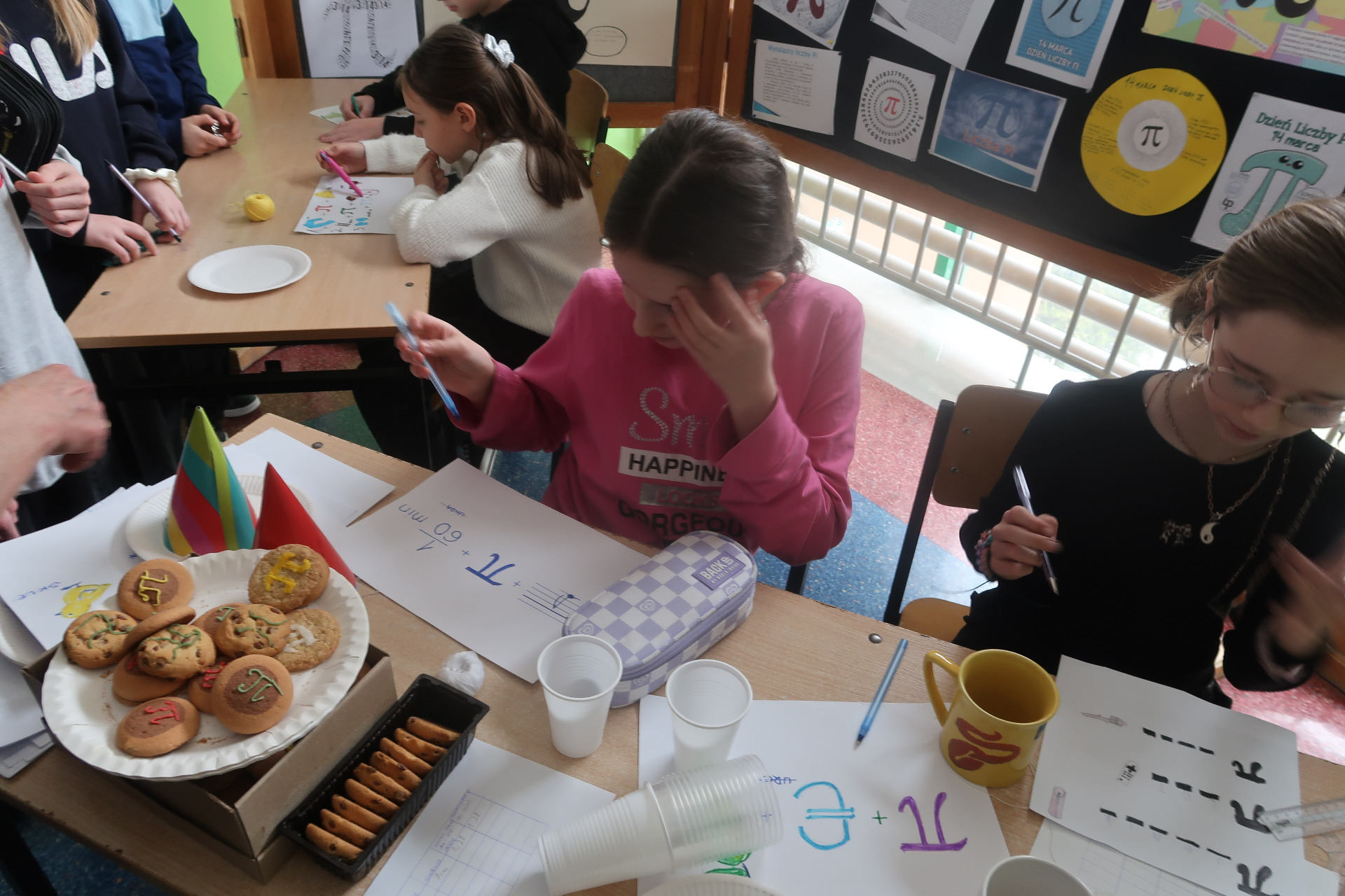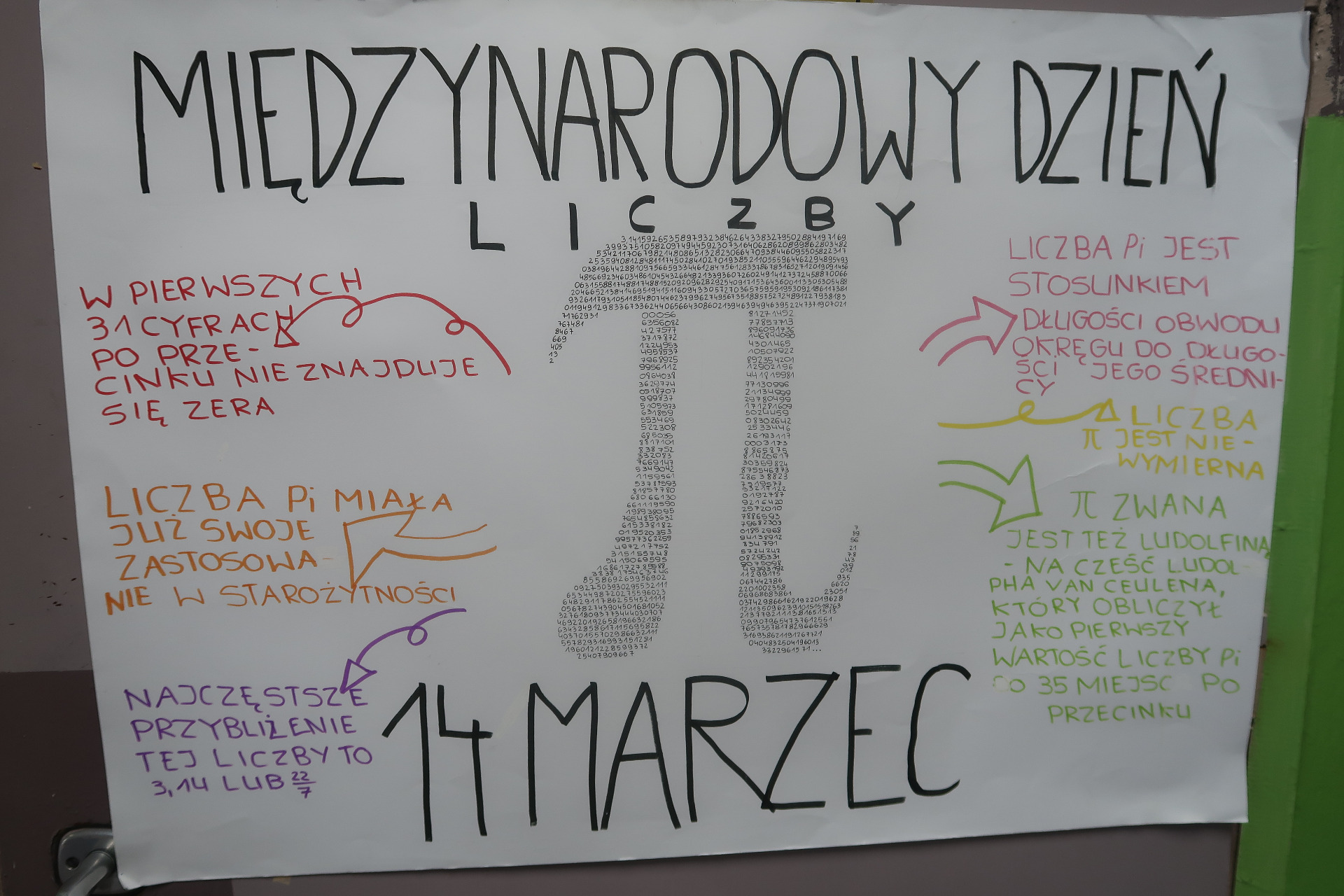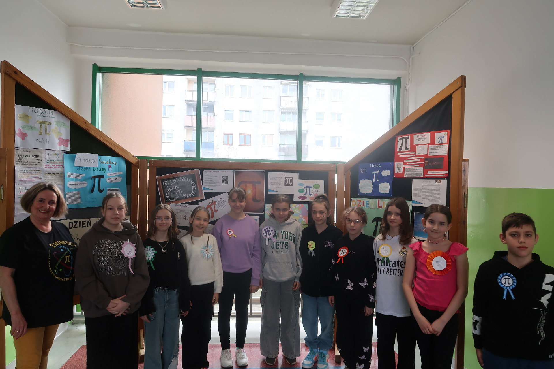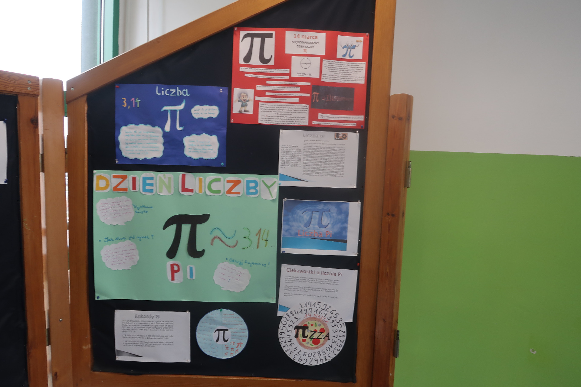 14.03.2025 r. w naszej szkole po raz kolejny obchodziliśmy Międzynarodowy Dzień Liczby Pi. Na korytarzu szkolnym zaroiło się od symbolu liczby Pi. Okna korytarza ozdobione zostały rozwinięciem liczby Pi do 200-setnej liczby po przecinku. Na drzwiach zamieszczone były kolorowo ozdobione plakaty wykonane przez uczniów klas siódmych i ósmych.. Dodatkowo dzięki gazetce szkolnej wszyscy mogli zgłębić wiedzę na temat stałej Archimedesa. Oprócz tego, na długiej przerwie, uczniowie klas 5-8 uczestniczyli w zabawach związanych z liczbą Pi. Chętni mierzyli obwody i średnice kół, uczniowie rozwiązywali PI-rebusy, wypisywali wyrazy z sylabą PI. Wszyscy za udział otrzymywali ciasteczka z napisem Pi. Liczba Pi na pewno zostanie w pamięci uczniów, nawet tych mniej uzdolnionych matematycznie. Takie zabawy poszerzają wiadomości uczniów, dostarczają wiele emocji, ale przede wszystkim pobudzają ciekawość poznawczą i zainteresowanie piękną, ale trudną dziedziną wiedzy, jaką jest matematyka. Święto Pi, niewątpliwie, uatrakcyjniło nasze szkolne życie.