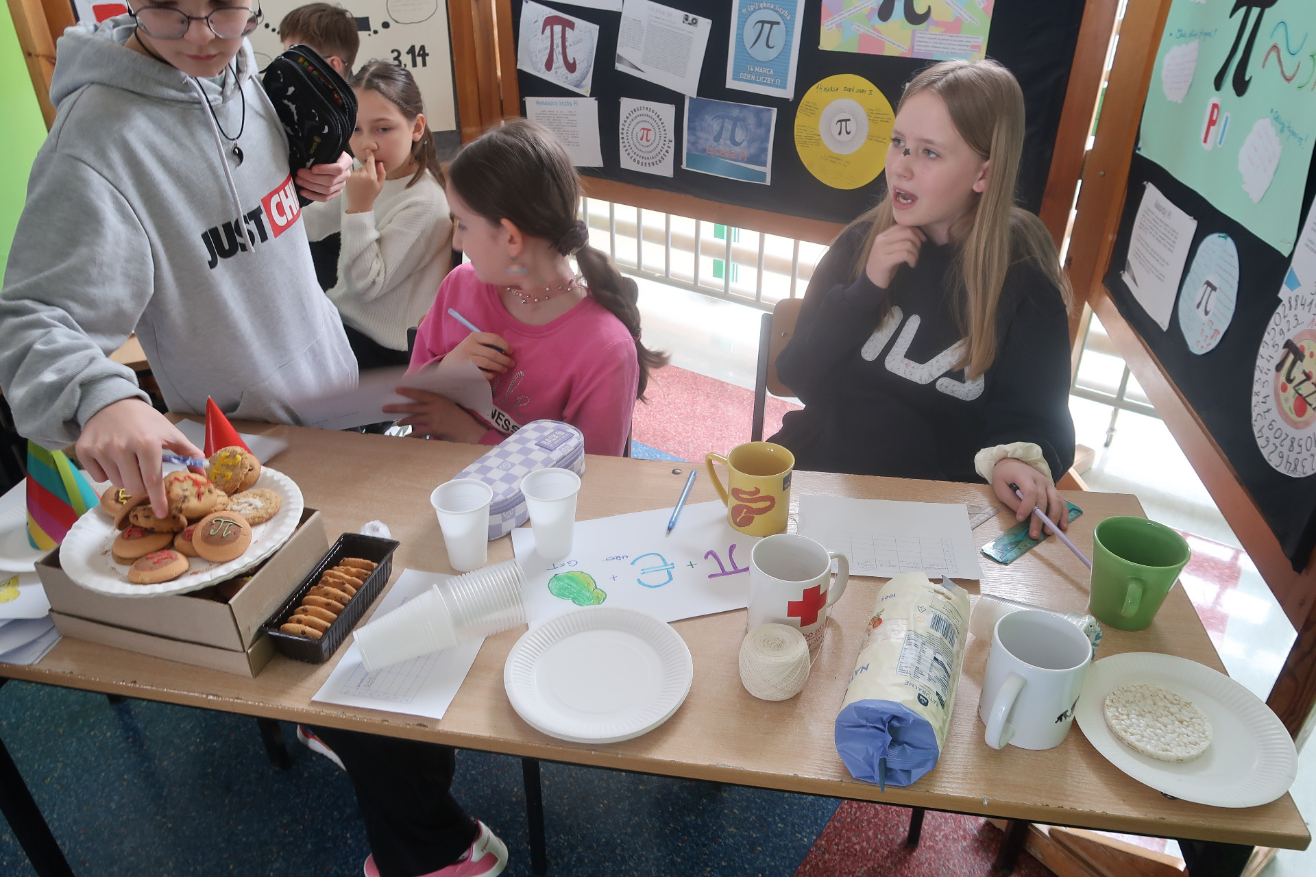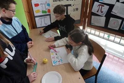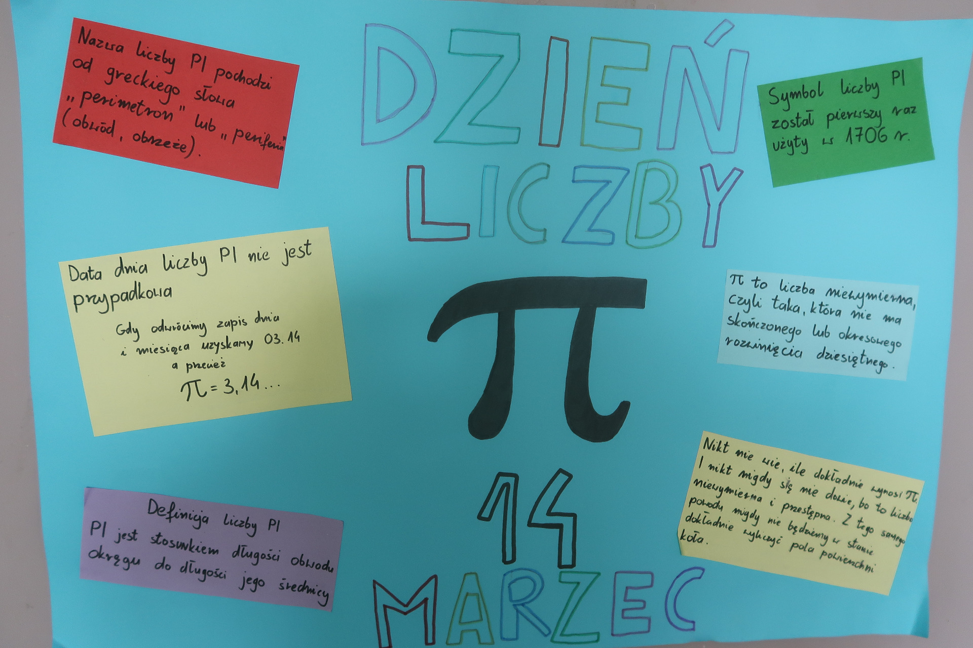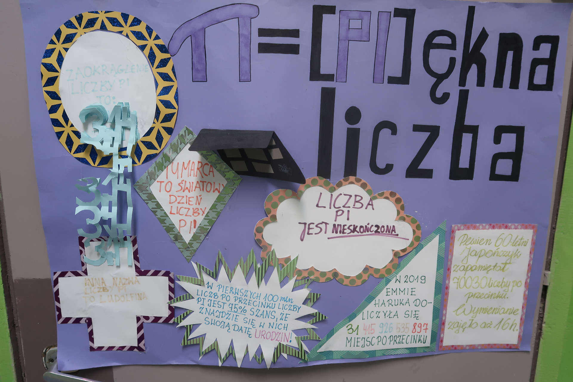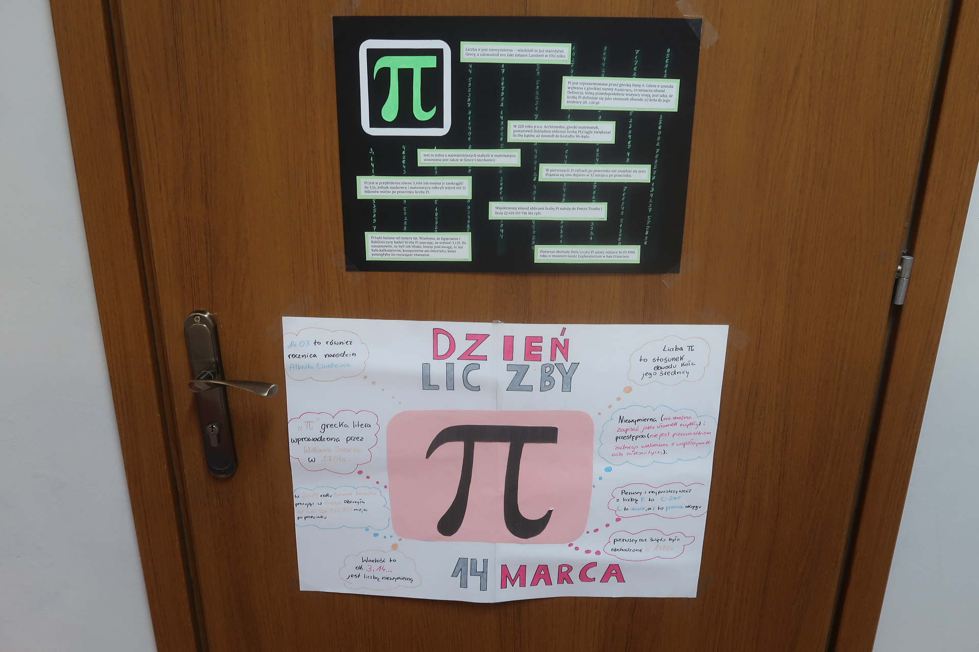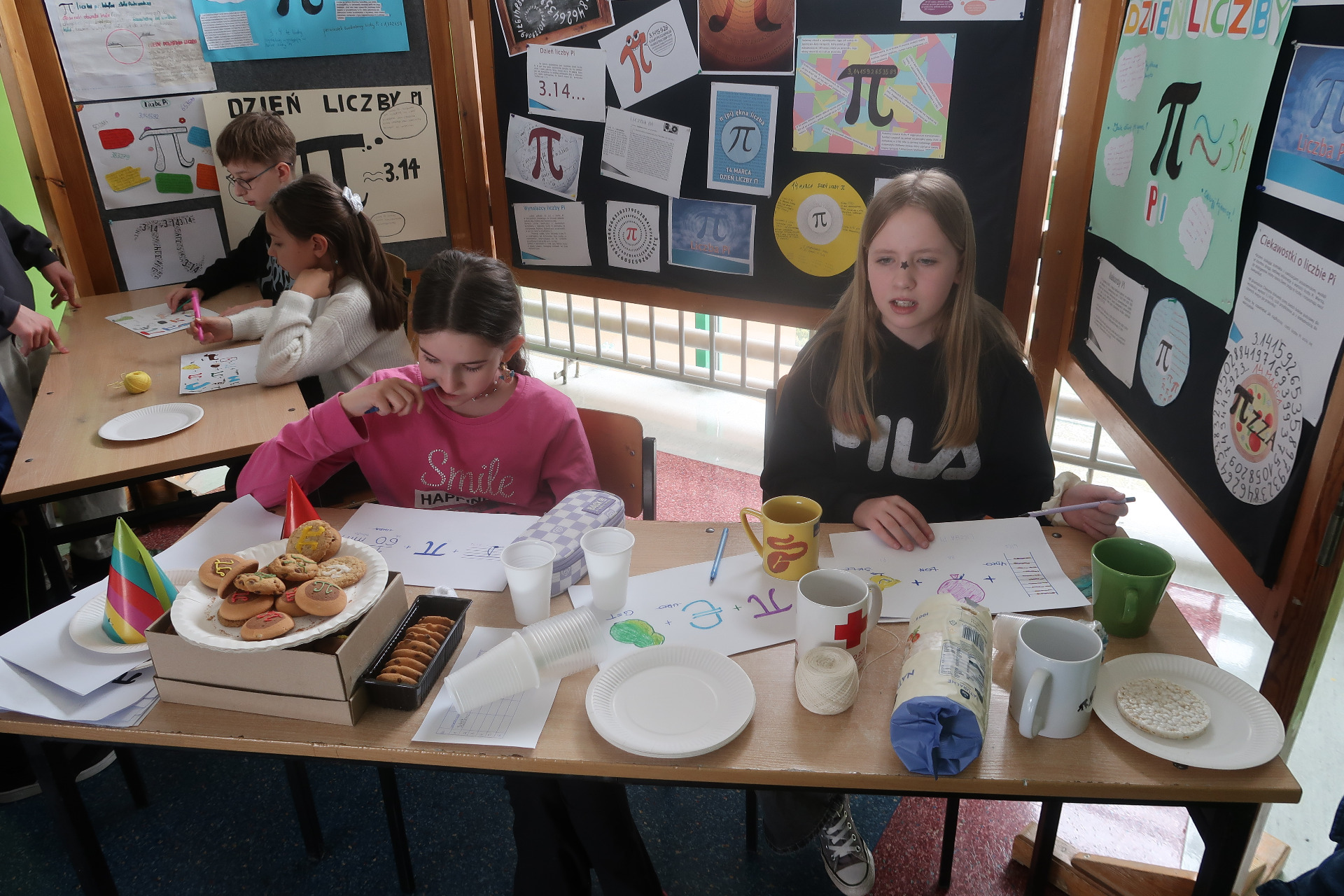 14.03.2025 r. w naszej szkole po raz kolejny obchodziliśmy Międzynarodowy Dzień Liczby Pi. Na korytarzu szkolnym zaroiło się od symbolu liczby Pi. Okna korytarza ozdobione zostały rozwinięciem liczby Pi do 200-setnej liczby po przecinku. Na drzwiach zamieszczone były kolorowo ozdobione plakaty wykonane przez uczniów klas siódmych i ósmych.. Dodatkowo dzięki gazetce szkolnej wszyscy mogli zgłębić wiedzę na temat stałej Archimedesa. Oprócz tego, na długiej przerwie, uczniowie klas 5-8 uczestniczyli w zabawach związanych z liczbą Pi. Chętni mierzyli obwody i średnice kół, uczniowie rozwiązywali PI-rebusy, wypisywali wyrazy z sylabą PI. Wszyscy za udział otrzymywali ciasteczka z napisem Pi. Liczba Pi na pewno zostanie w pamięci uczniów, nawet tych mniej uzdolnionych matematycznie. Takie zabawy poszerzają wiadomości uczniów, dostarczają wiele emocji, ale przede wszystkim pobudzają ciekawość poznawczą i zainteresowanie piękną, ale trudną dziedziną wiedzy, jaką jest matematyka. Święto Pi, niewątpliwie, uatrakcyjniło nasze szkolne życie.
