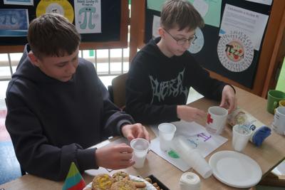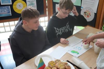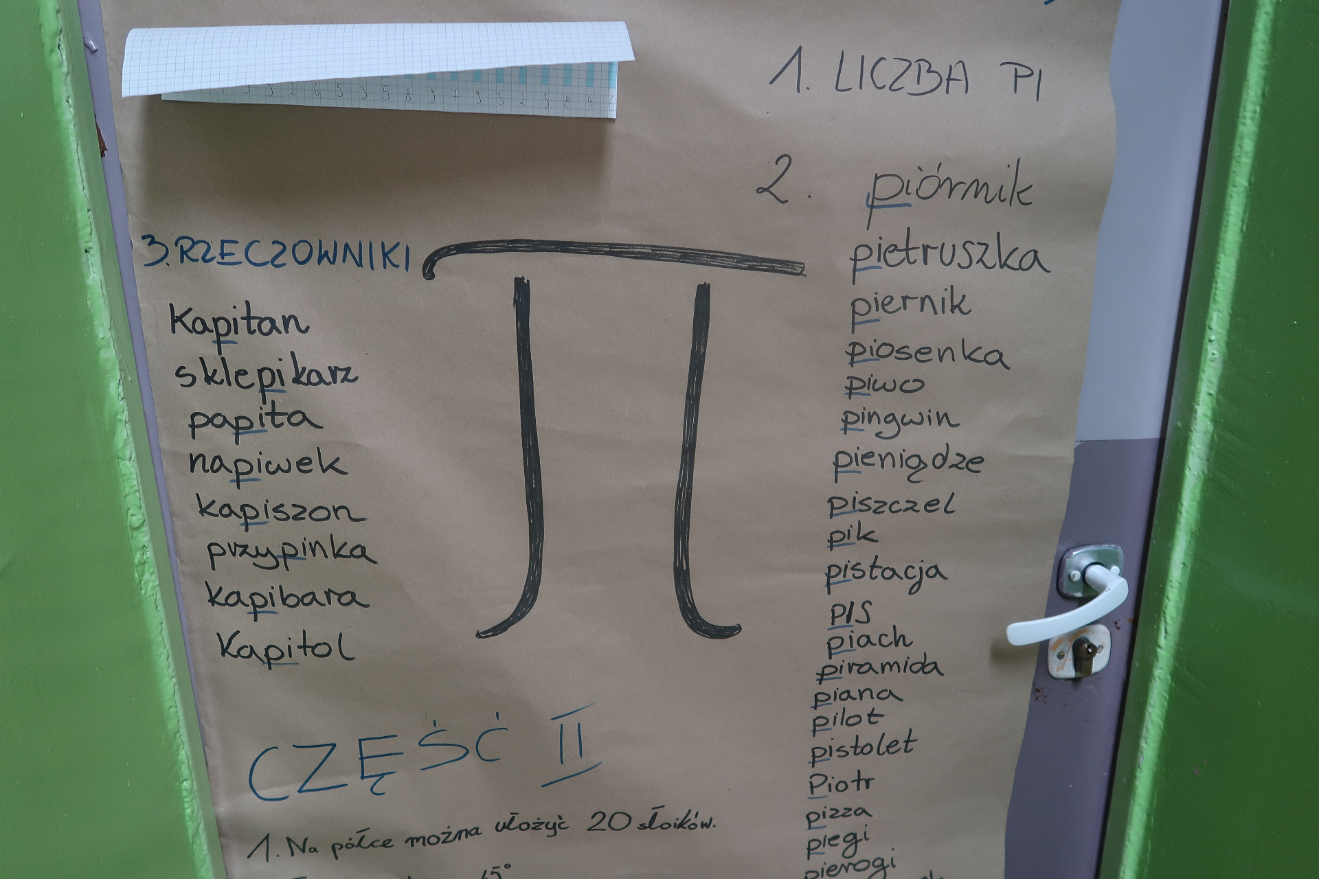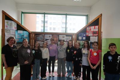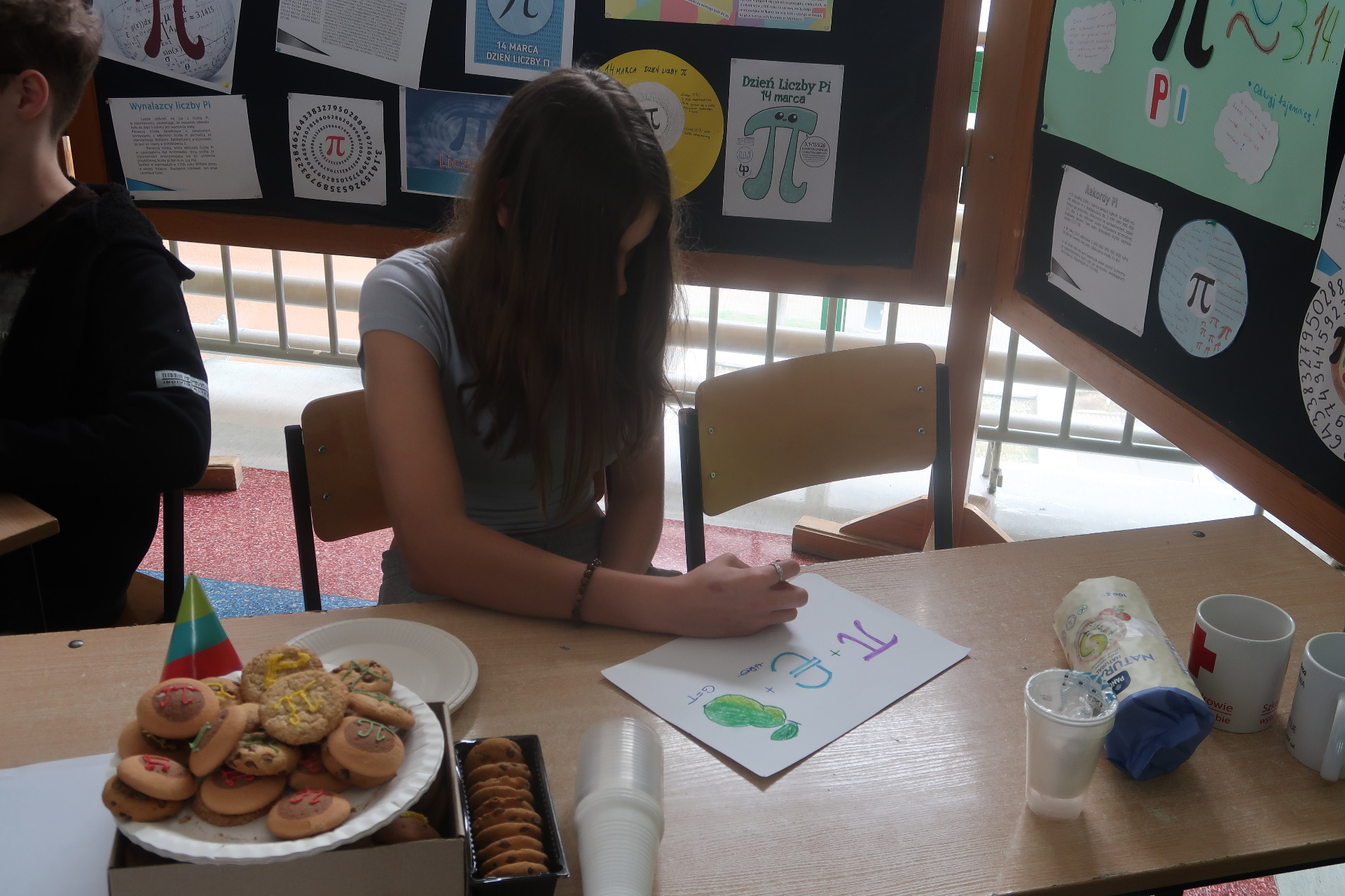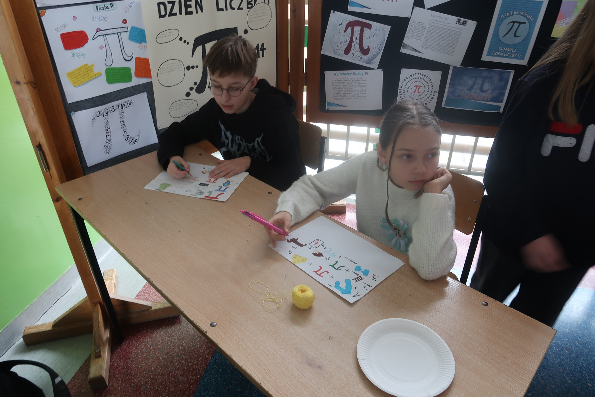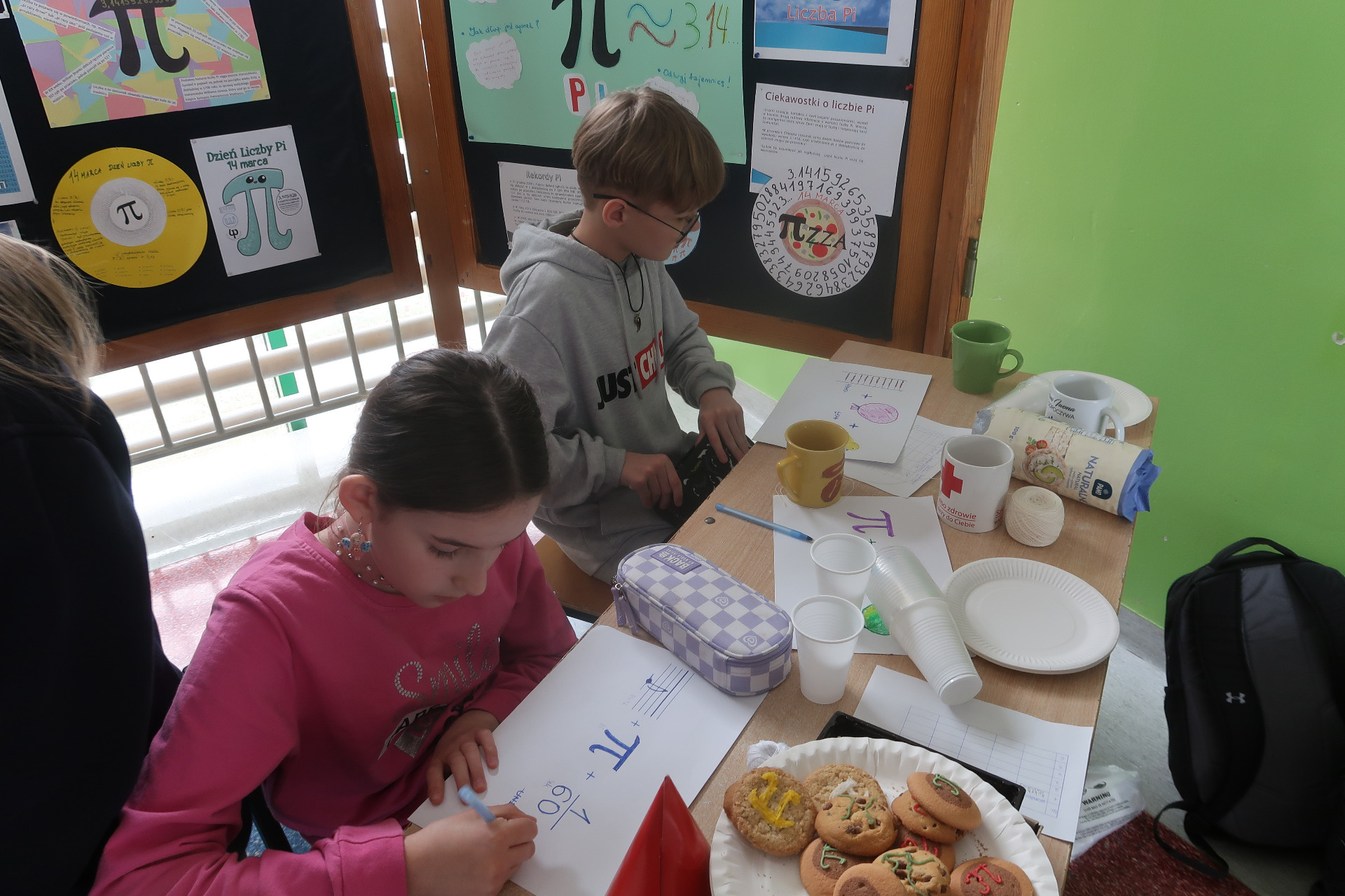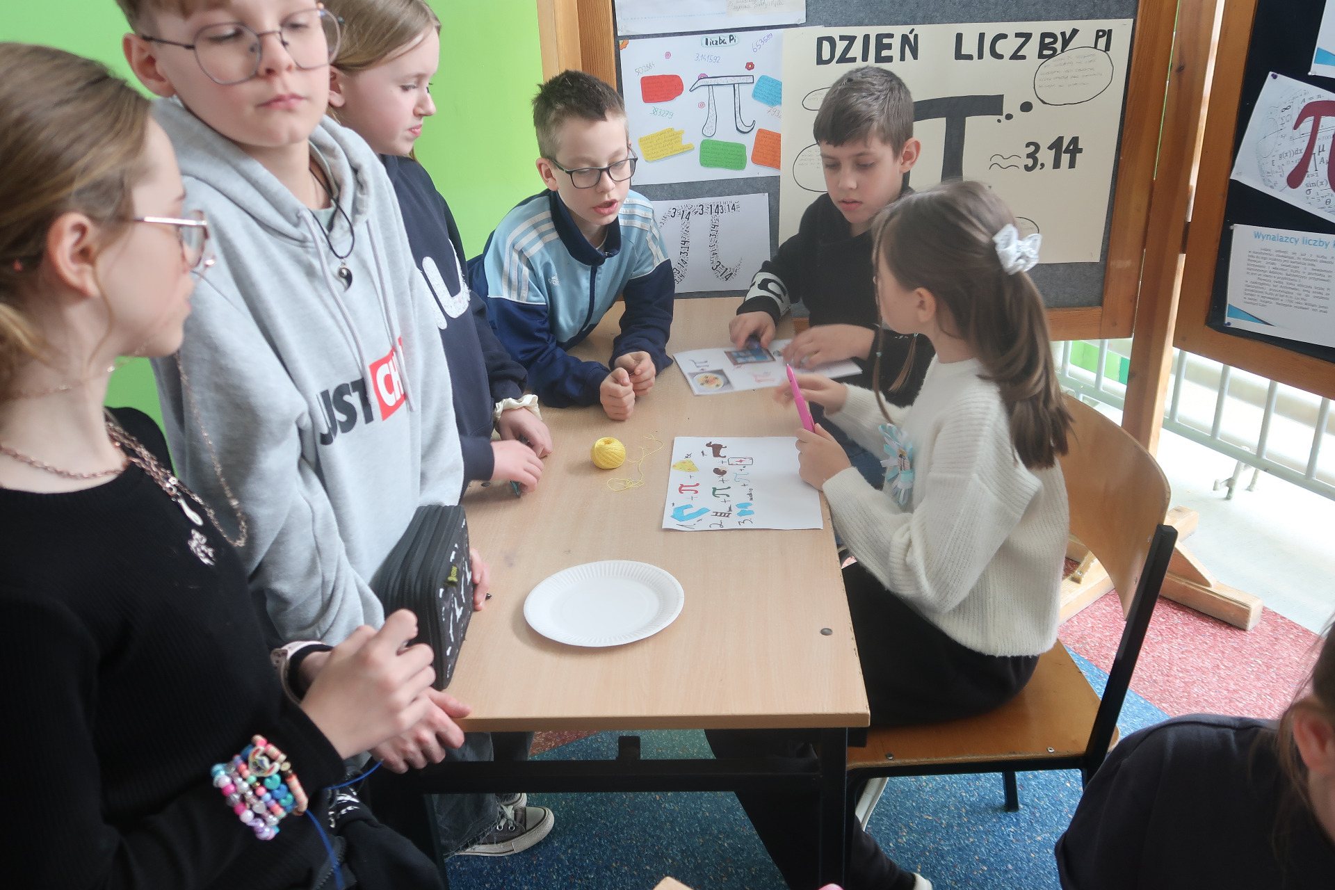 14.03.2025 r. w naszej szkole po raz kolejny obchodziliśmy Międzynarodowy Dzień Liczby Pi. Na korytarzu szkolnym zaroiło się od symbolu liczby Pi. Okna korytarza ozdobione zostały rozwinięciem liczby Pi do 200-setnej liczby po przecinku. Na drzwiach zamieszczone były kolorowo ozdobione plakaty wykonane przez uczniów klas siódmych i ósmych.. Dodatkowo dzięki gazetce szkolnej wszyscy mogli zgłębić wiedzę na temat stałej Archimedesa. Oprócz tego, na długiej przerwie, uczniowie klas 5-8 uczestniczyli w zabawach związanych z liczbą Pi. Chętni mierzyli obwody i średnice kół, uczniowie rozwiązywali PI-rebusy, wypisywali wyrazy z sylabą PI. Wszyscy za udział otrzymywali ciasteczka z napisem Pi. Liczba Pi na pewno zostanie w pamięci uczniów, nawet tych mniej uzdolnionych matematycznie. Takie zabawy poszerzają wiadomości uczniów, dostarczają wiele emocji, ale przede wszystkim pobudzają ciekawość poznawczą i zainteresowanie piękną, ale trudną dziedziną wiedzy, jaką jest matematyka. Święto Pi, niewątpliwie, uatrakcyjniło nasze szkolne życie.