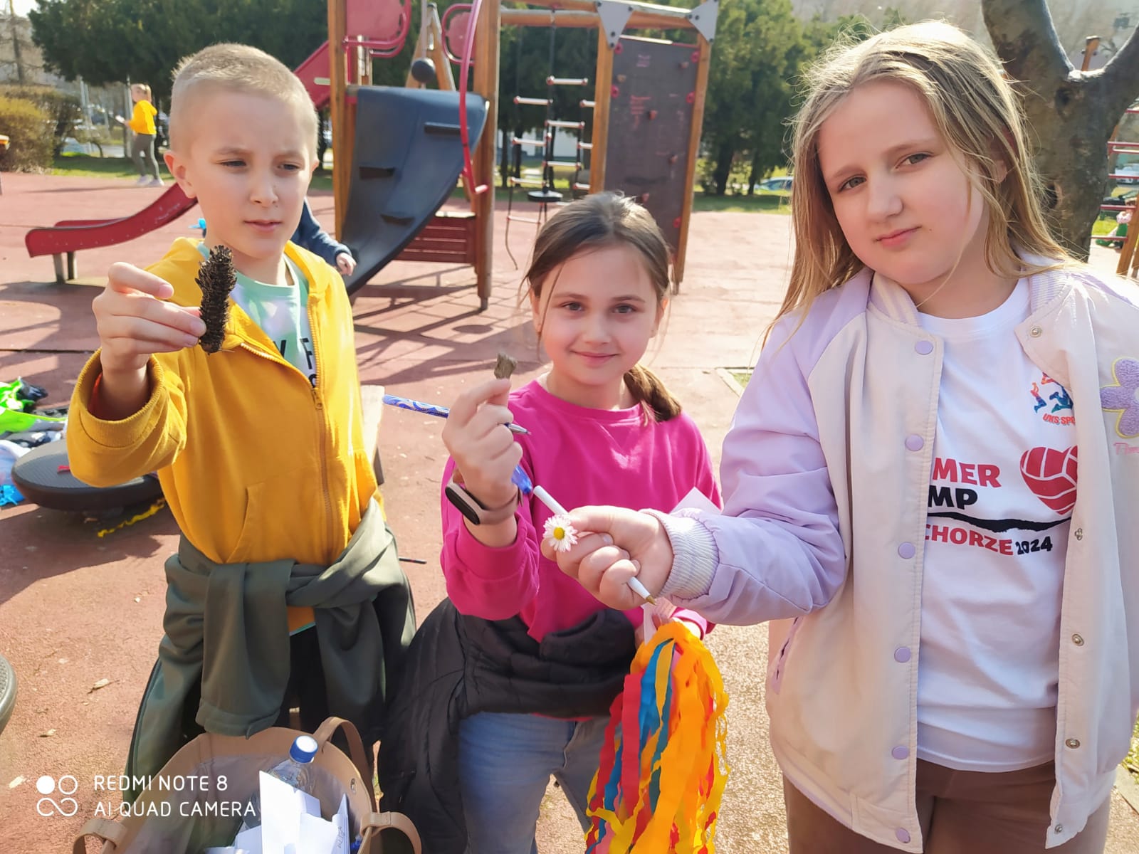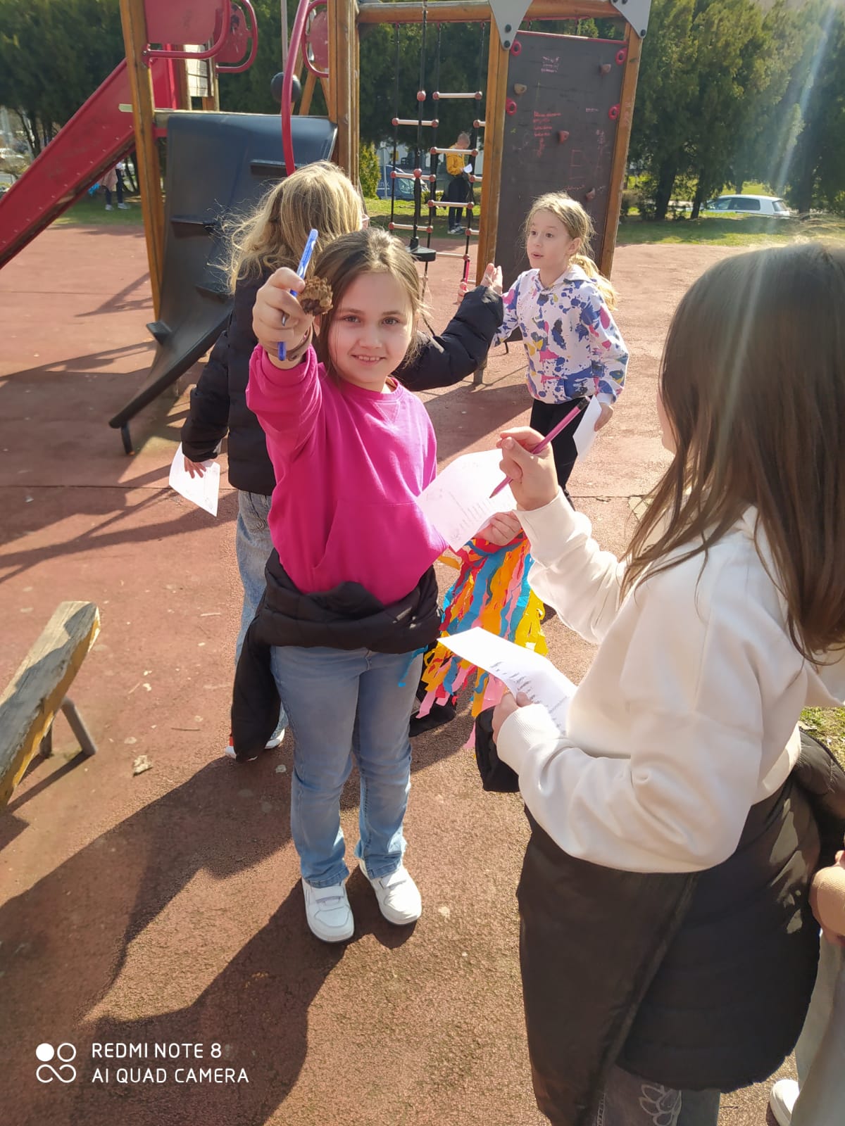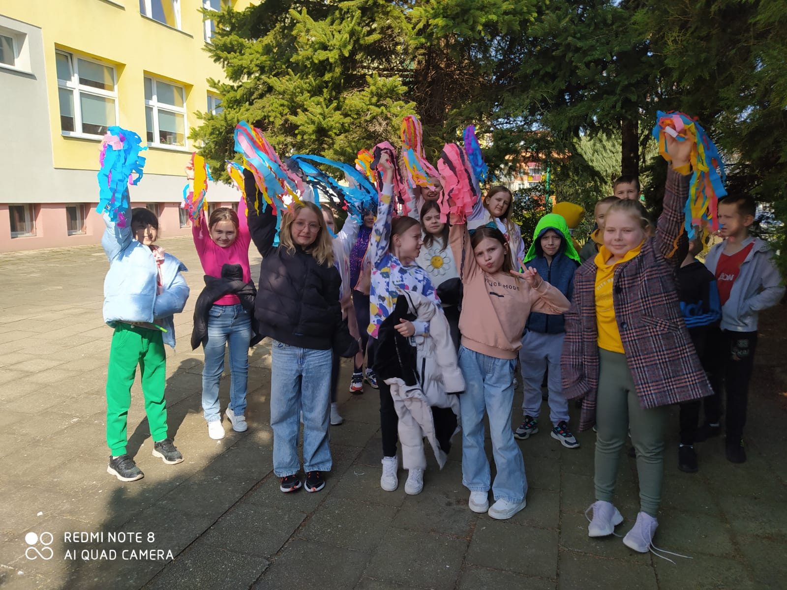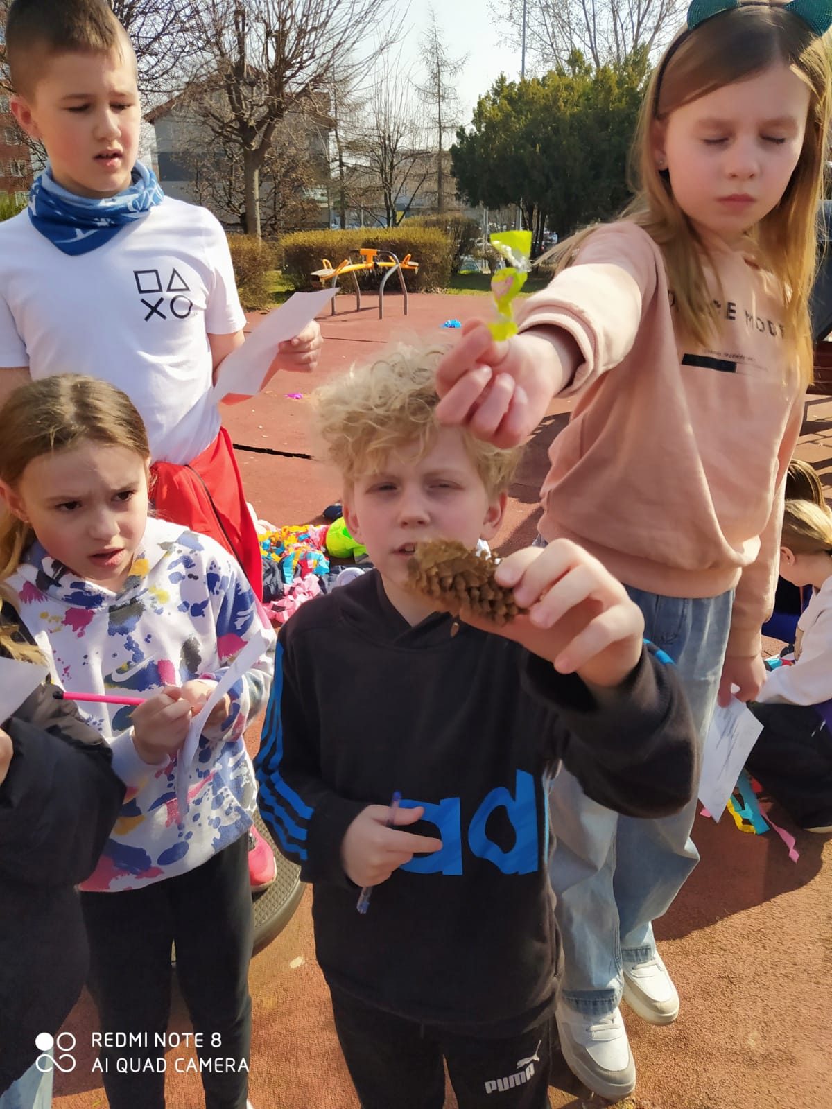 Uczniowie klas 1-3 przyszli w tym dniu ubrani w wiosenne barwy. Każda klasa otrzymała list od pani Wiosny , w którym wyjaśnione były reguły zabawy. Po przeczytaniu listu poszczególne klasy wyruszyły na wiosenną przygodę, szukając ukrytych wskazówek i wykonując ciekawe zadania . Wspólna zabawa nie tylko dostarczyła mnóstwo emocji, ale także uczyła współpracy, spostrzegawczości i kreatywnego myślenia.