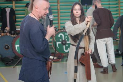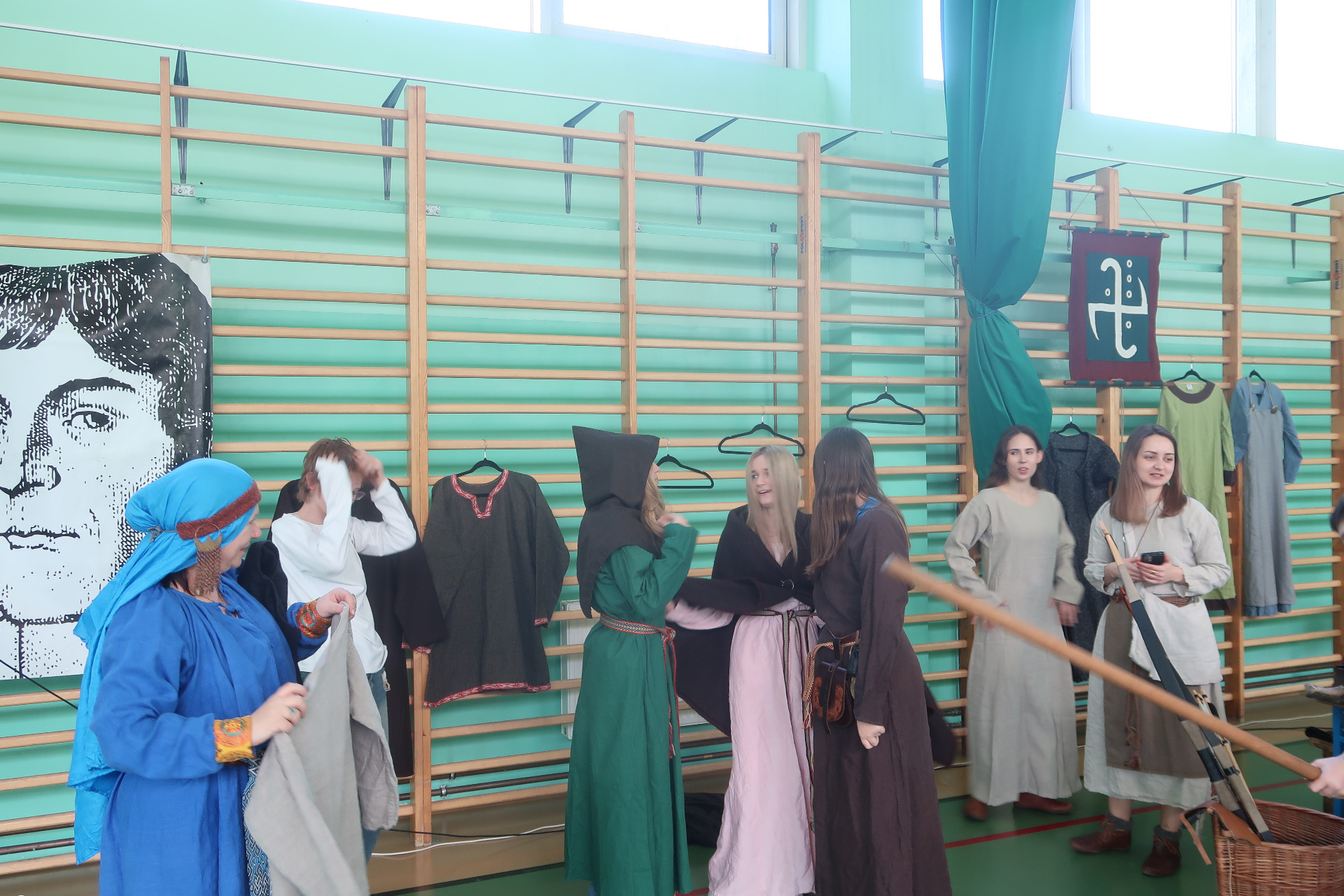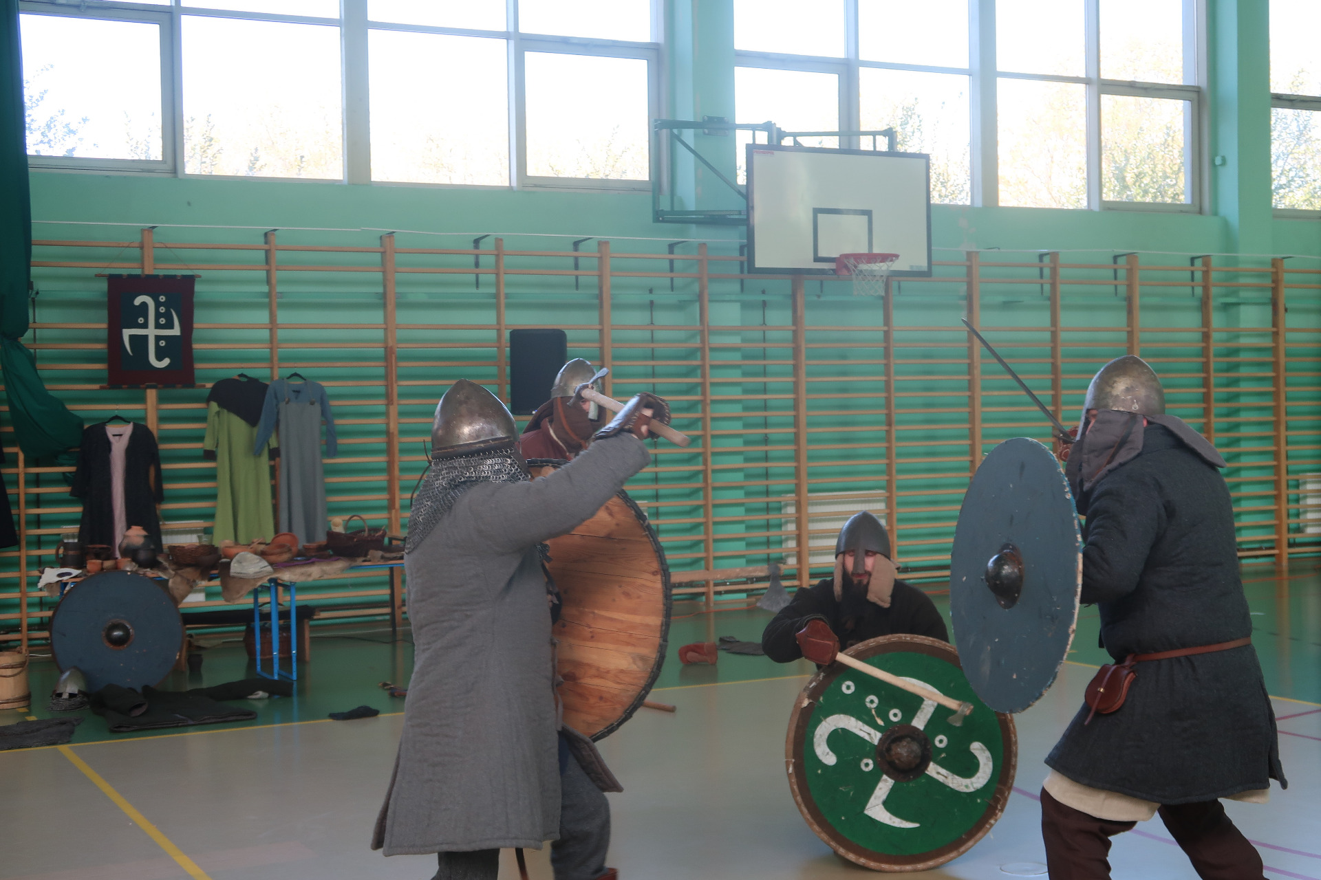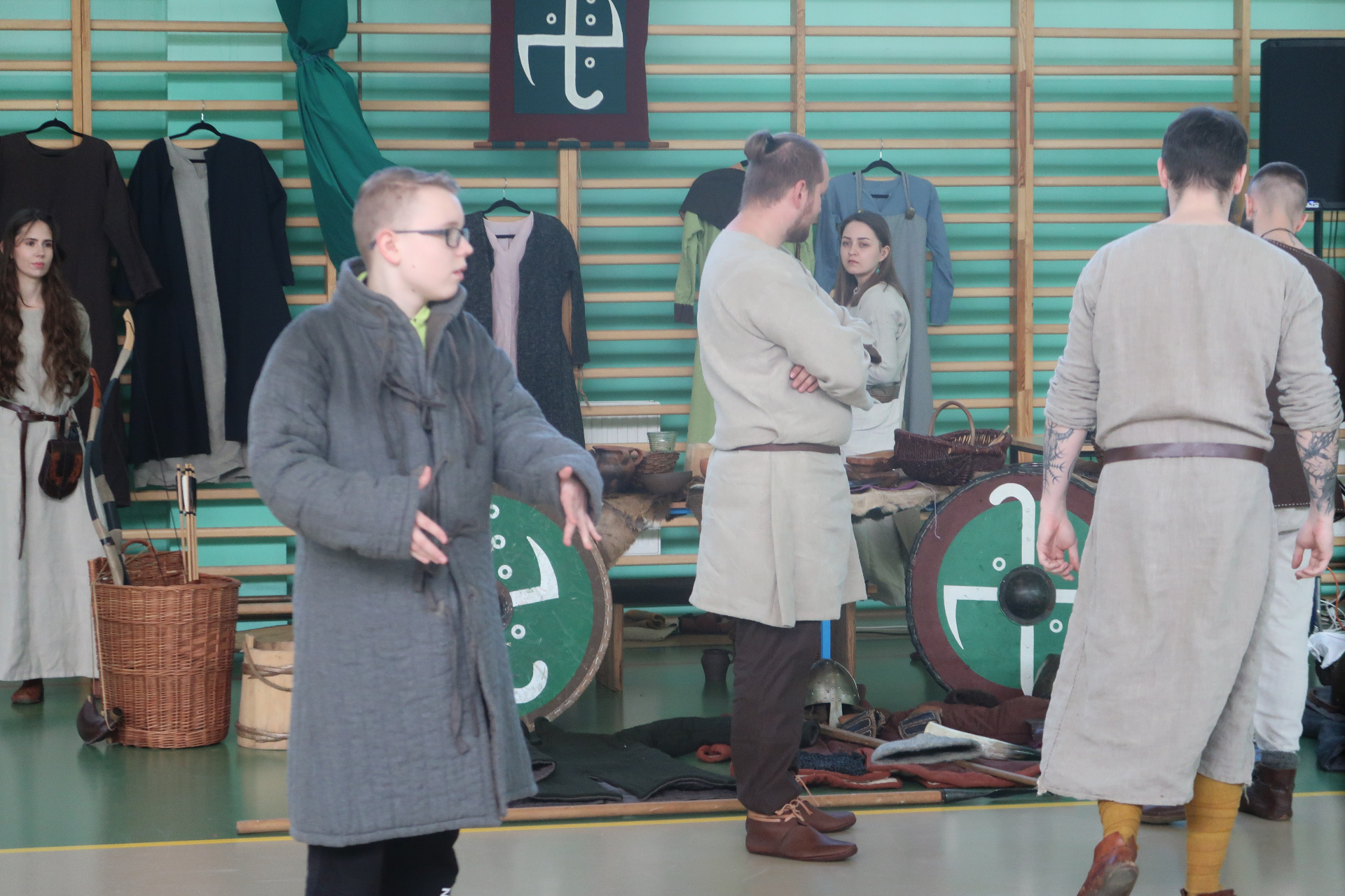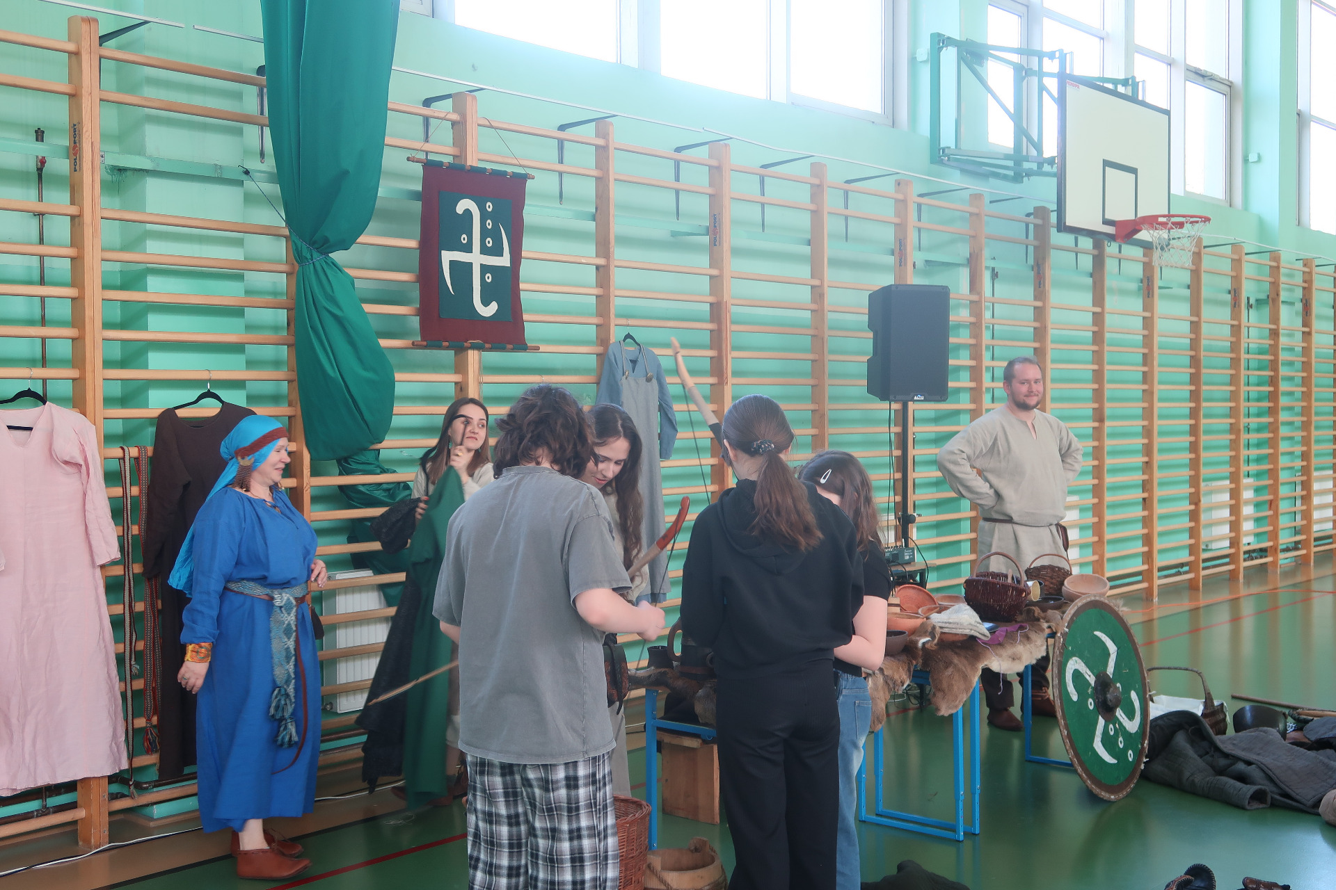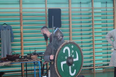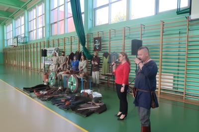 Podczas spotkania uczniowie mogli z bliska obejrzeć stroje, broń i przedmioty codziennego użytku z epoki pierwszego króla Polski. Rekonstruktorzy w ciekawy sposób opowiadali o życiu codziennym, strukturze społecznej, rzemiosłach oraz wojennych wyprawach Bolesława Chrobrego.