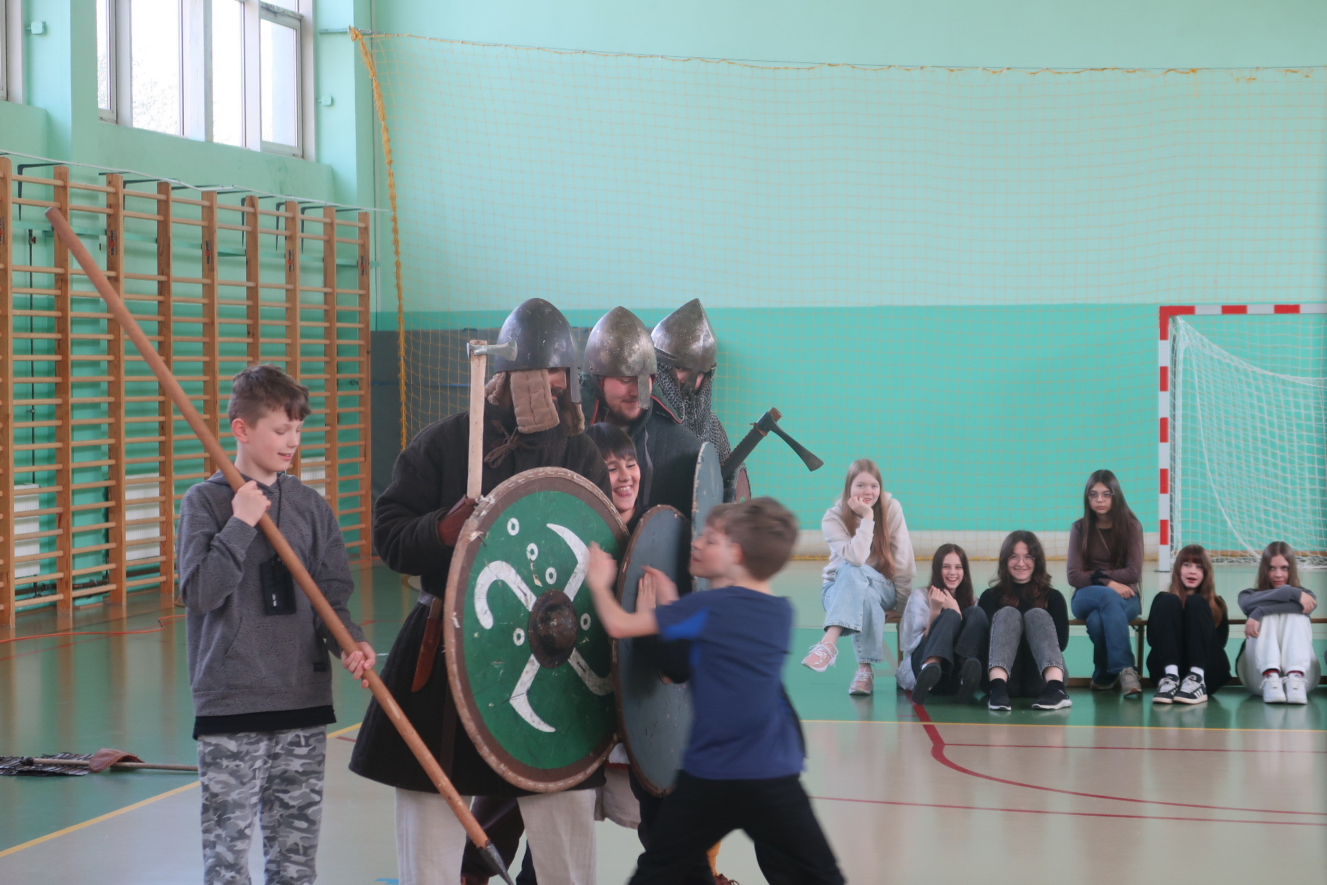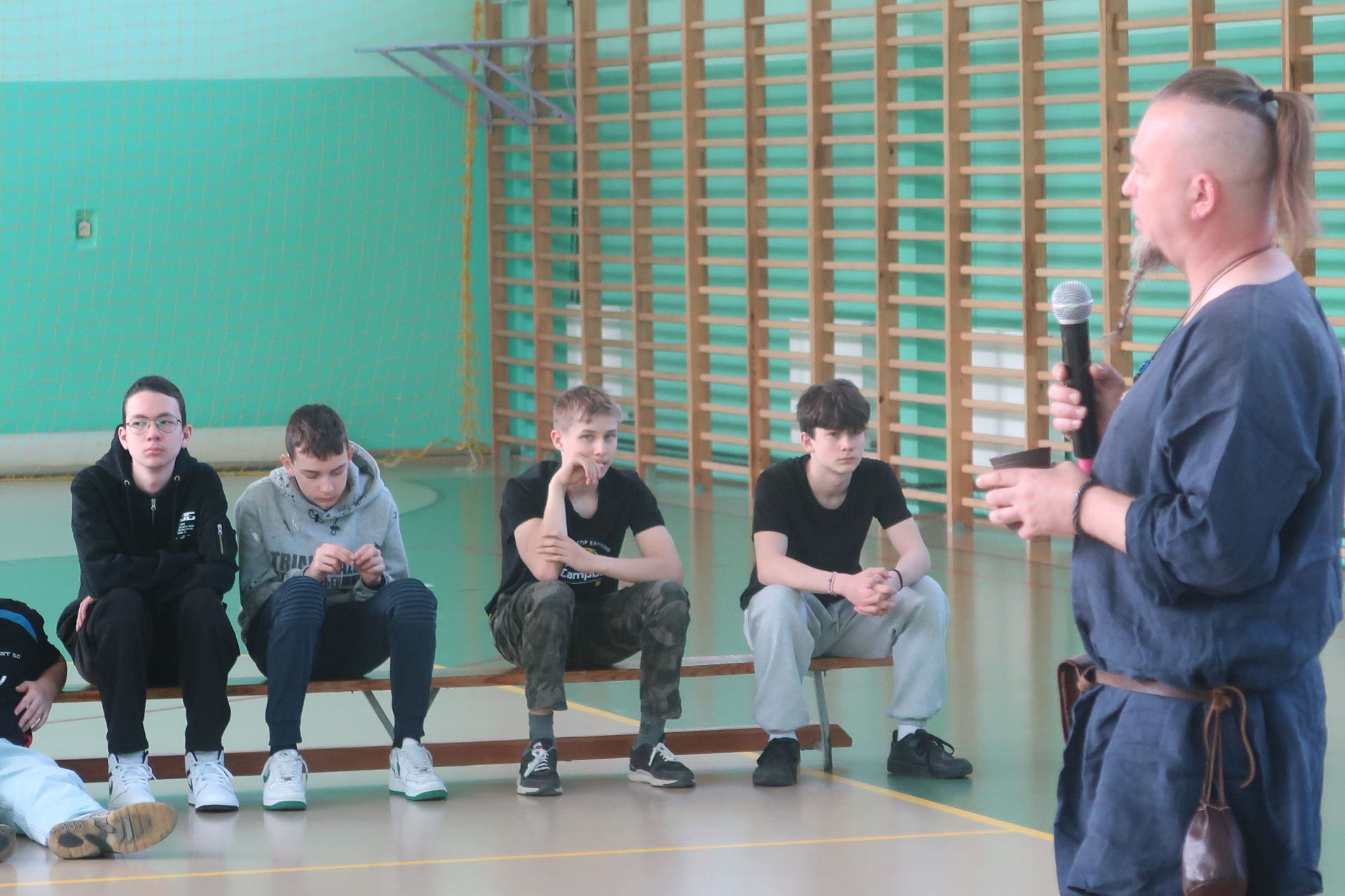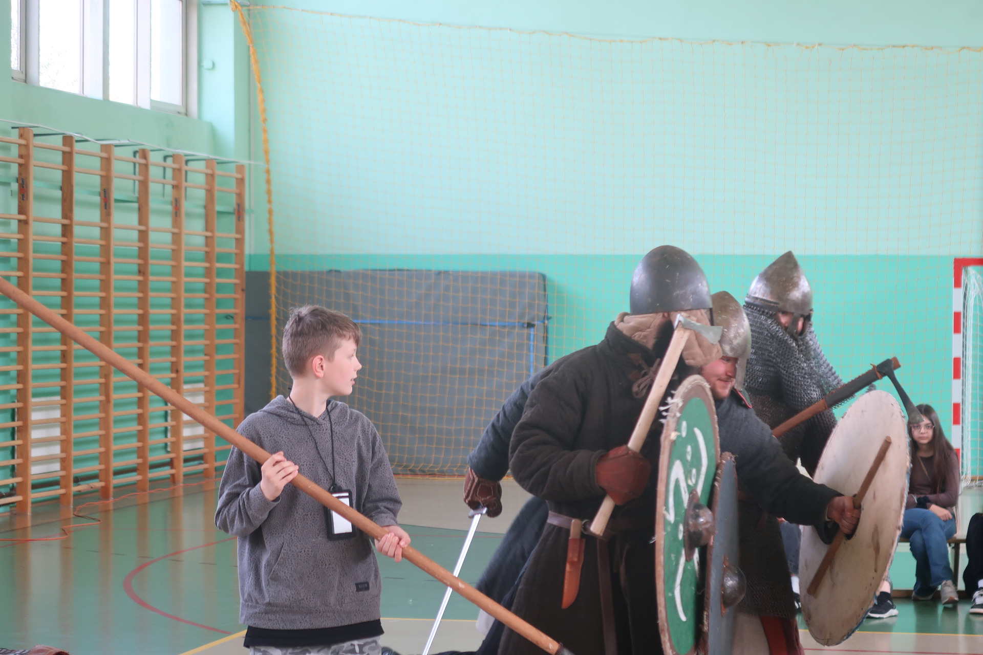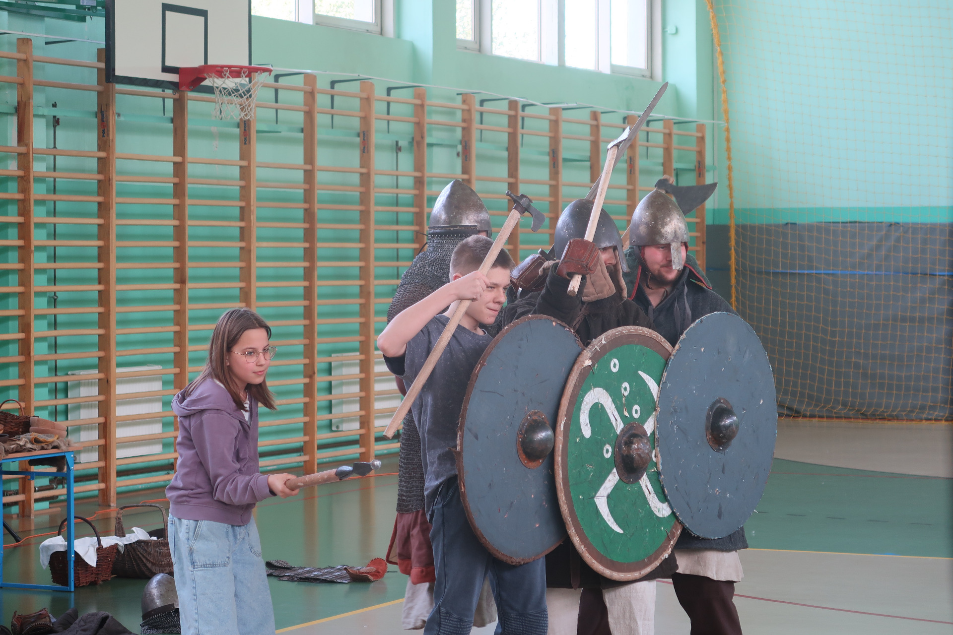 W niezwykłą podróż do czasów Bolesława Chrobrego zabrali nas 15 kwietnia członkowie grupy rekonstrukcyjnej Dziadoszanie – drużyna grodu Głogów. Dzięki żywej lekcji historii uczniowie mieli wyjątkową okazję przenieść się do średniowiecza i poznać realia życia sprzed tysiąca lat.