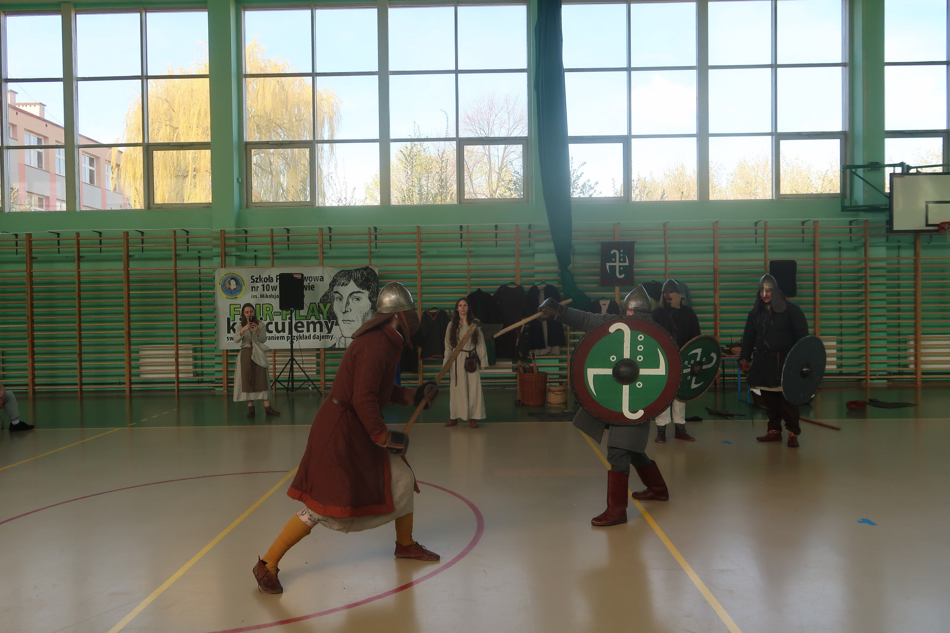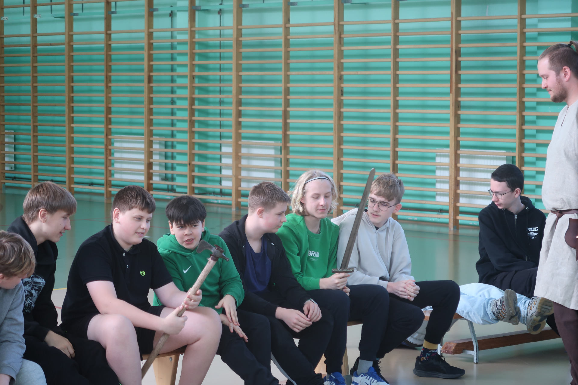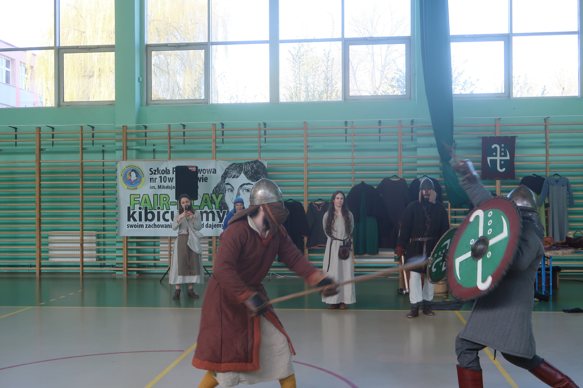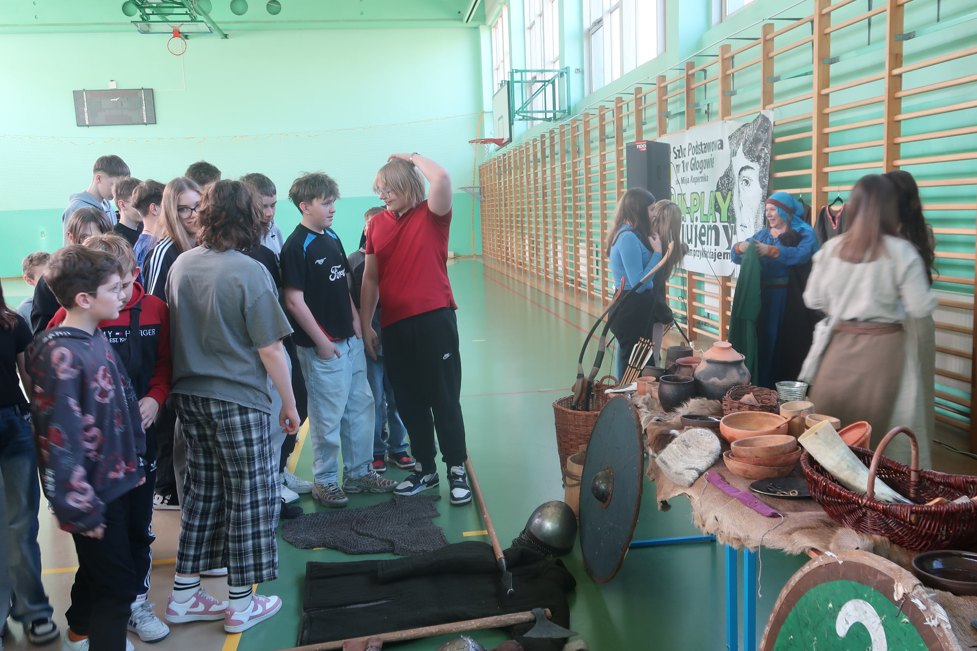 W niezwykłą podróż do czasów Bolesława Chrobrego zabrali nas 15 kwietnia członkowie grupy rekonstrukcyjnej Dziadoszanie – drużyna grodu Głogów. Dzięki żywej lekcji historii uczniowie mieli wyjątkową okazję przenieść się do średniowiecza i poznać realia życia sprzed tysiąca lat.
