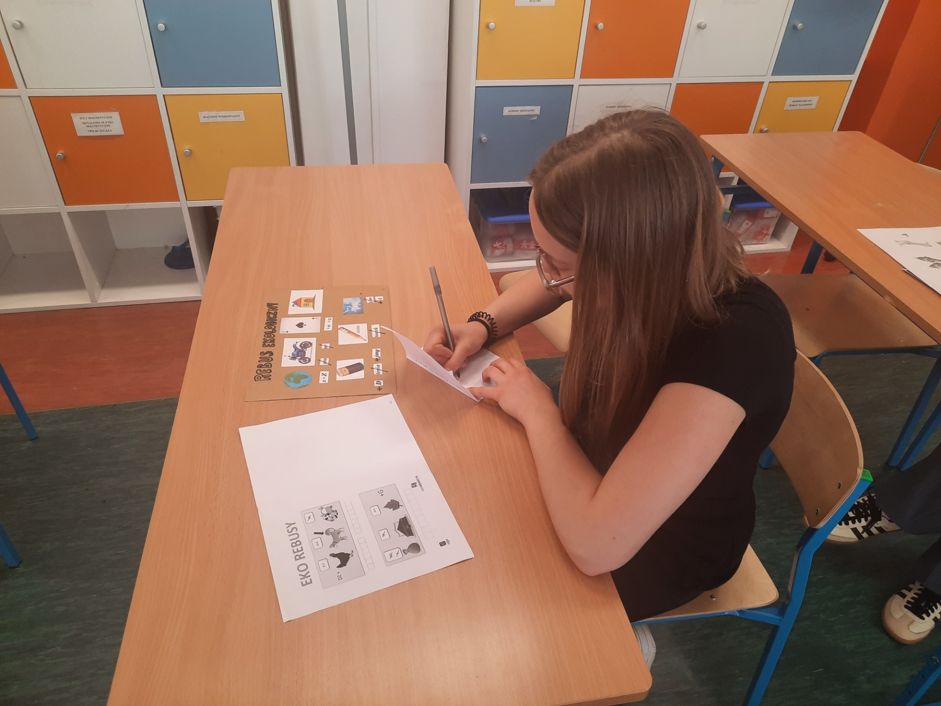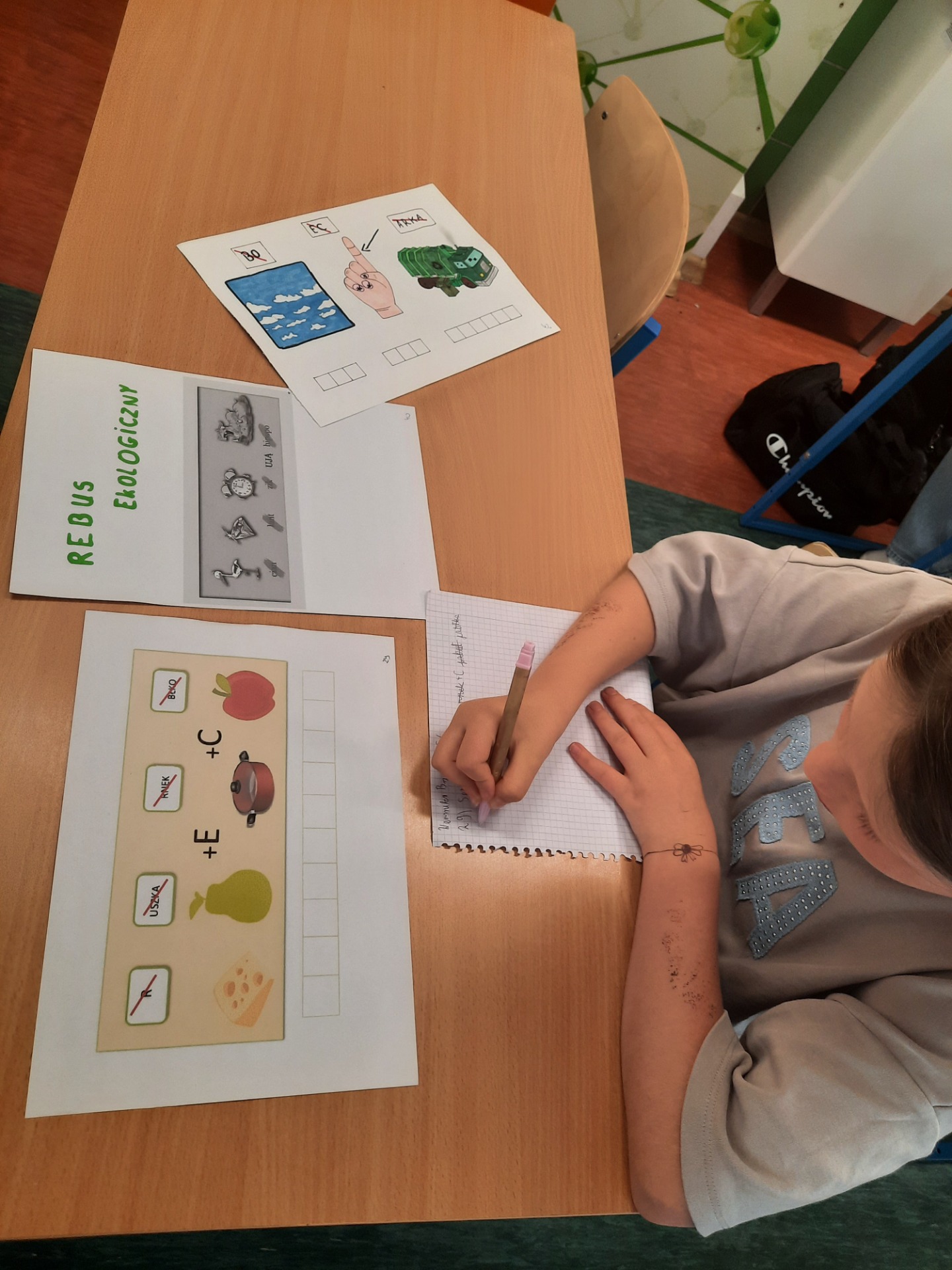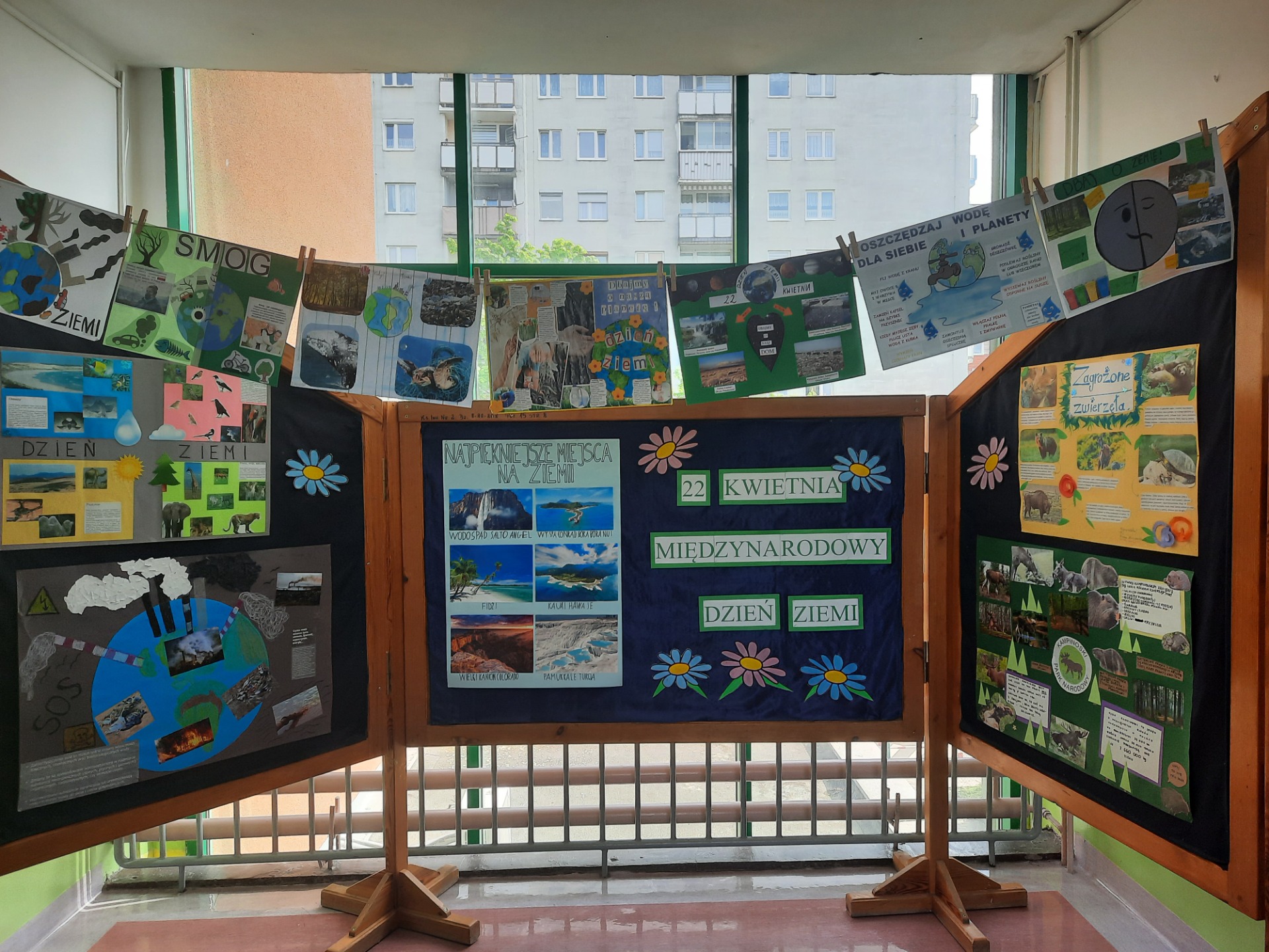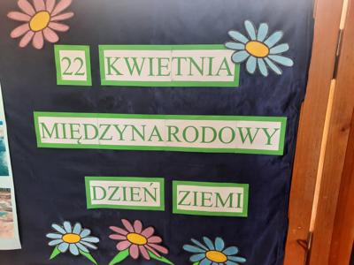 Dnia 23 kwietnia uczniowie klas 5-8 wzięli udział w zabawie z okazji Światowego Dnia Ziemi.Uczniowie na dwóch długich przerwach rozwiązywali rebusy ekologiczne, które wcześniej przygotowali.Na korytarzu szkolnym zaprezentowano prace uczniów klas 7 związane z tematyką ochrony środowiska.Przygotowaniem wystawy prac uczniów i zabawą z rozwiązywaniem rebusów zajęli się nauczyciele biologii Pani Jolanta Bartczak i geografii Sylwia Cwynar.