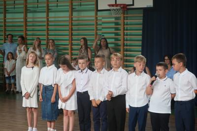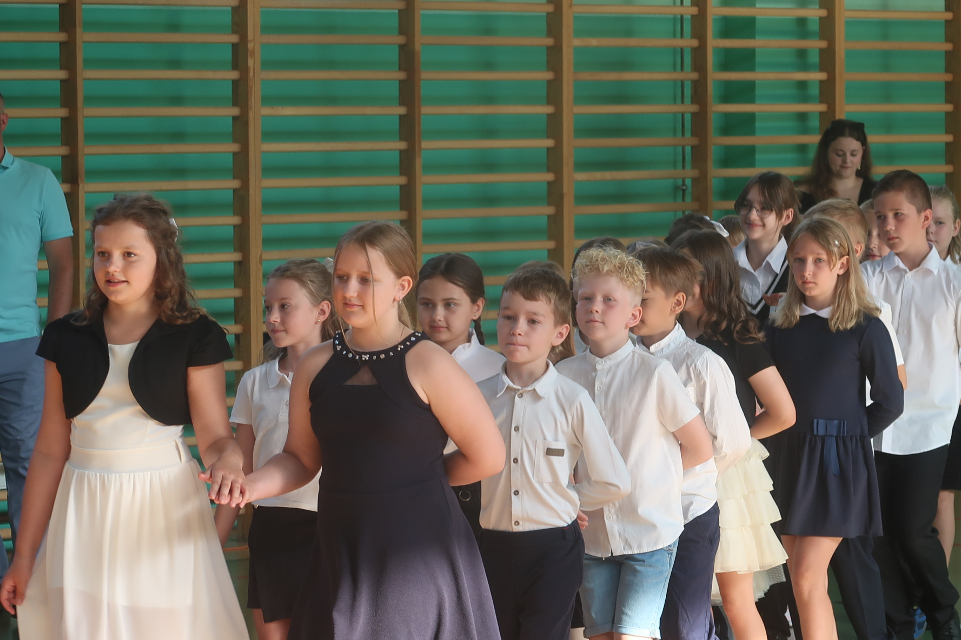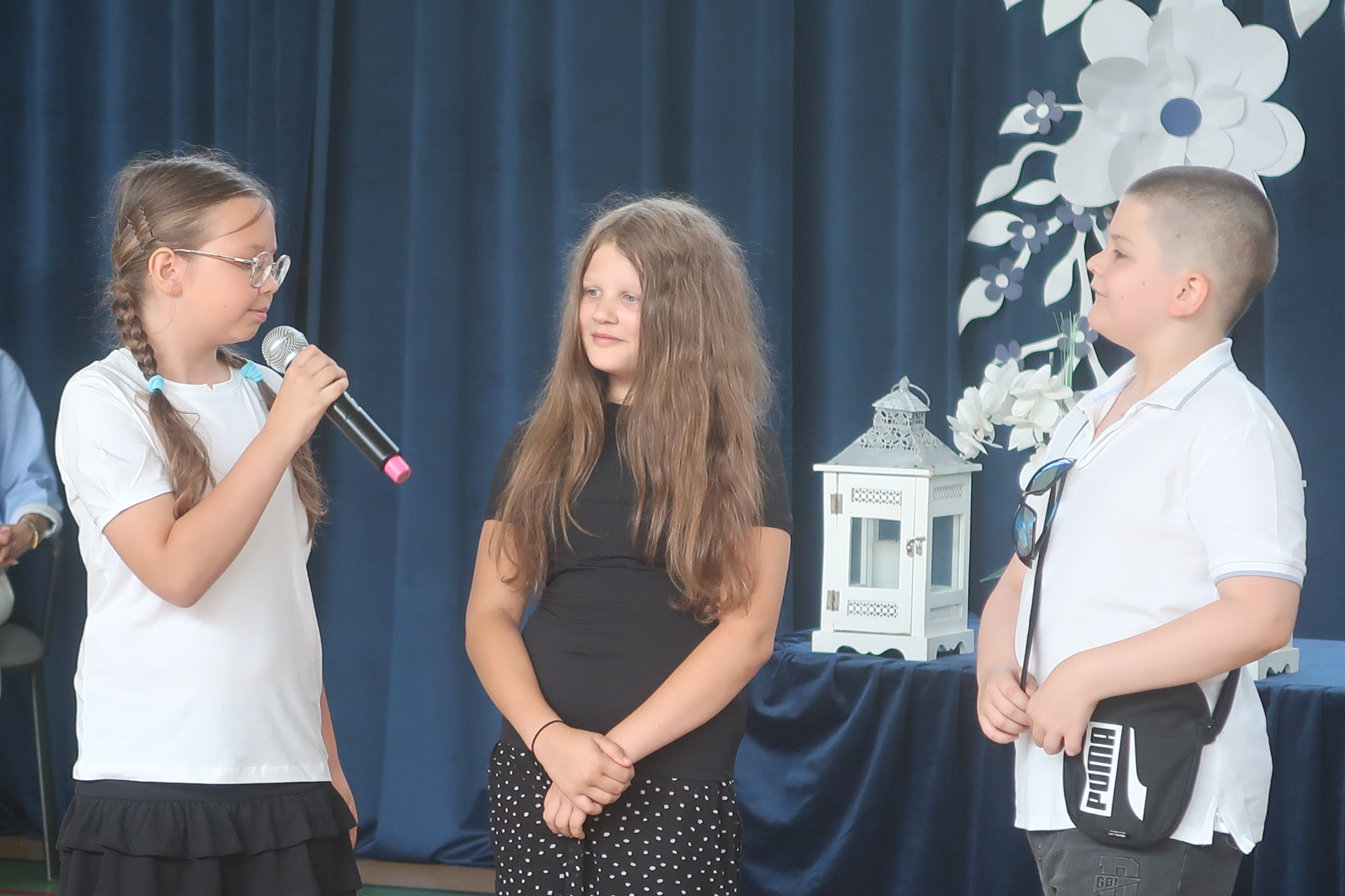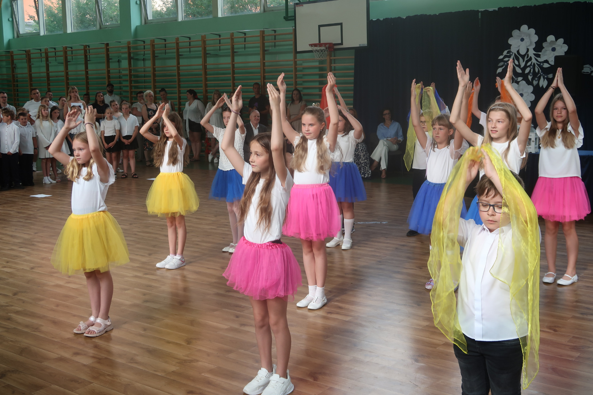 W piątek 27 czerwca 2025 roku odbyło się uroczyste zakończenie roku szkolnego, które podzielone było na dwie części – osobno dla klas I–IV oraz klas V–VIII. Podczas wydarzenia pani dyrektor oraz przedstawiciele Rady Rodziców podziękowali uczniom i nauczycielom za całoroczny wysiłek oraz złożyli wszystkim życzenia udanych, bezpiecznych wakacji.