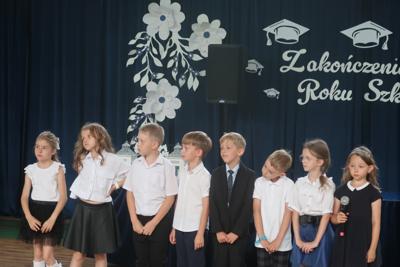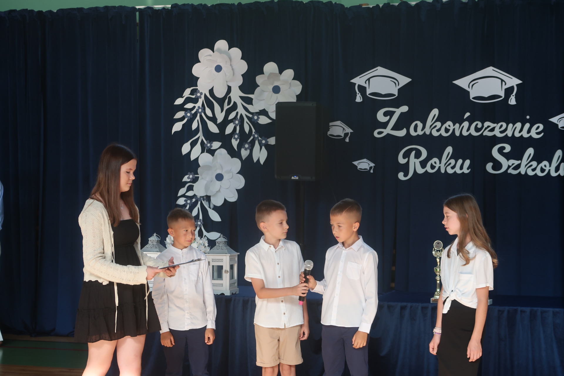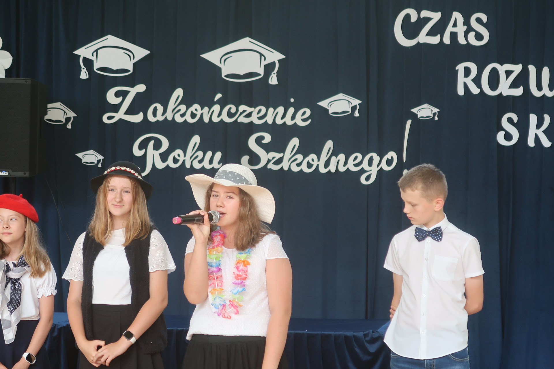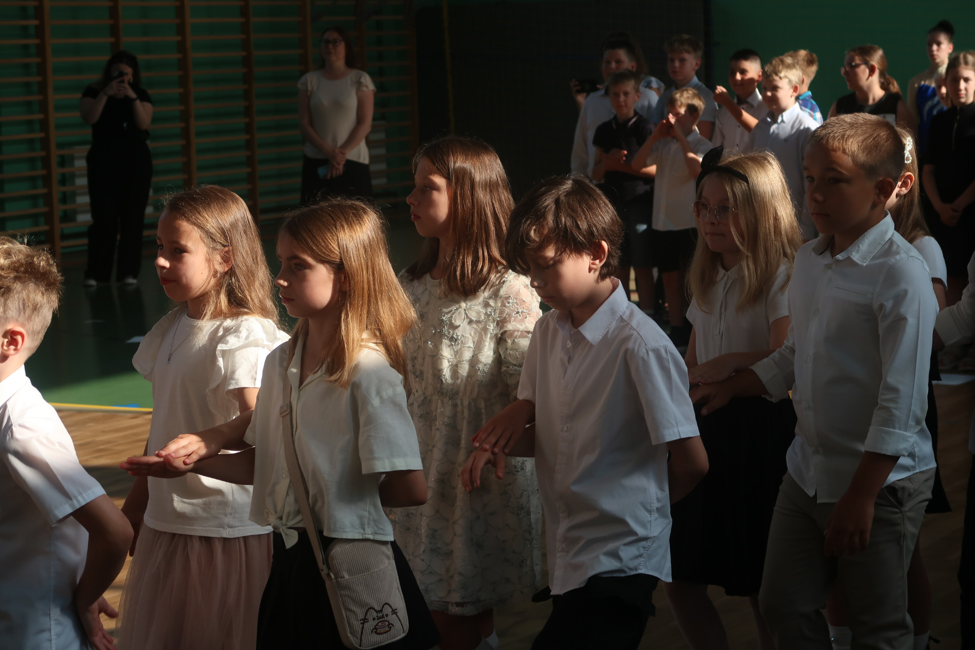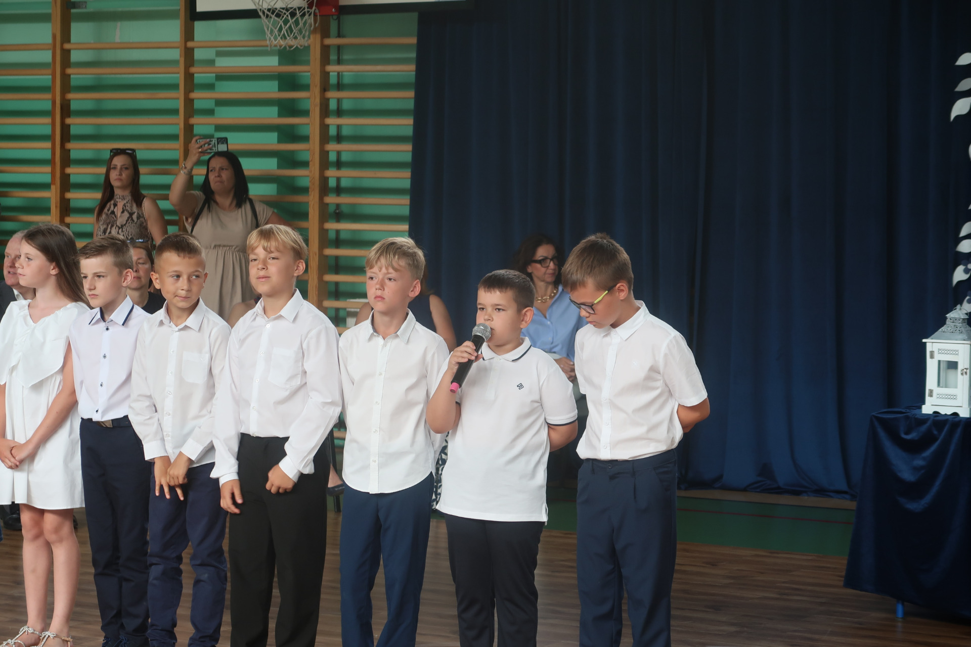 W piątek 27 czerwca 2025 roku odbyło się uroczyste zakończenie roku szkolnego, które podzielone było na dwie części – osobno dla klas I–IV oraz klas V–VIII. Podczas wydarzenia pani dyrektor oraz przedstawiciele Rady Rodziców podziękowali uczniom i nauczycielom za całoroczny wysiłek oraz złożyli wszystkim życzenia udanych, bezpiecznych wakacji.