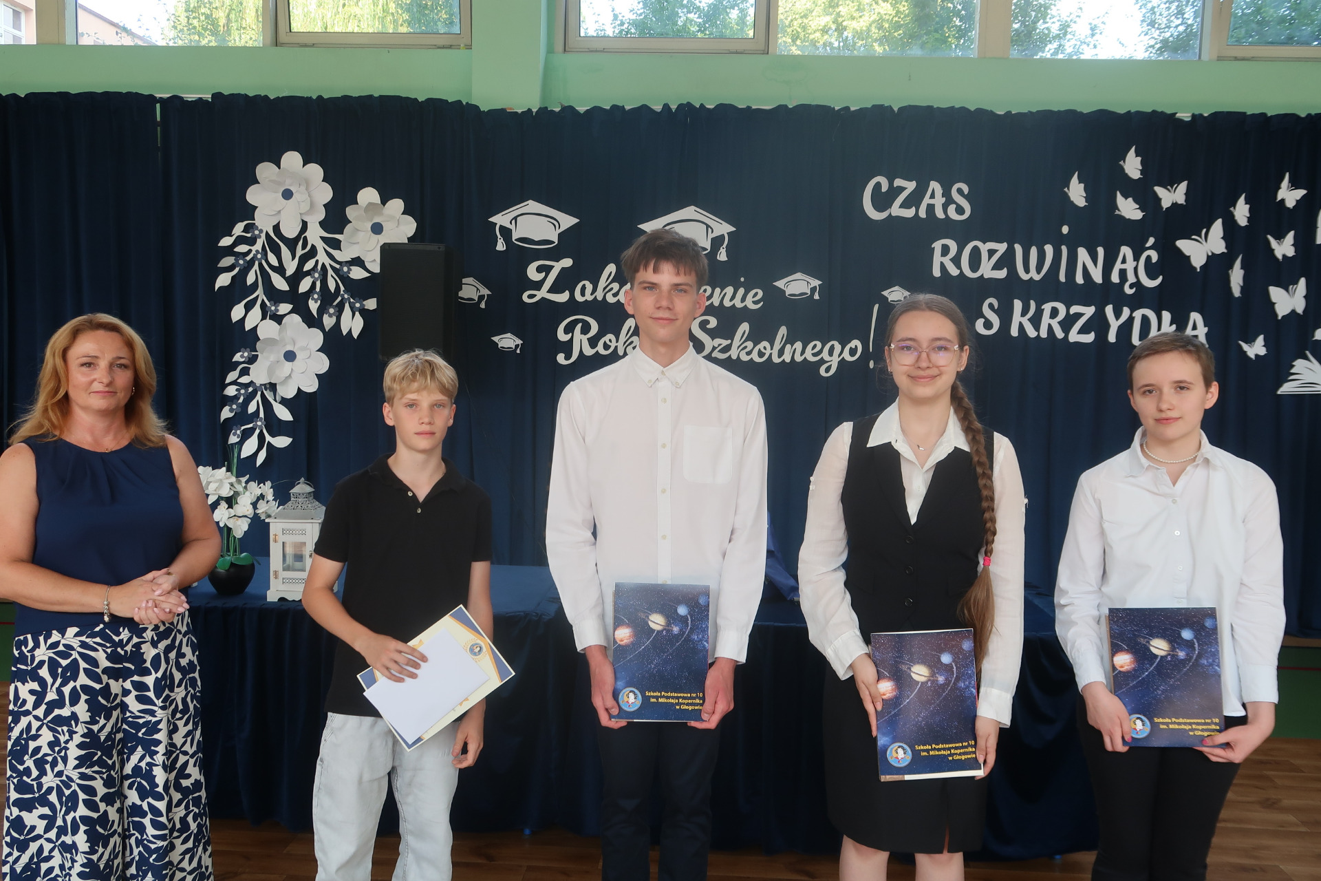 Klasom, które osiągnęły najlepsze wyniki w szkolnej rywalizacji, wręczono puchary, co zostało przyjęte z dużym entuzjazmem i dumą. Wyróżniono też czworo uczniów, którzy uzyskali średnią ocen 6,0.