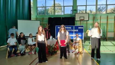 11 września br. odbył się w naszej szkole finał akcji Narodowe Czytanie Jana Kochanowskiego.Uczniowie klas 4-6 i 7-8 uczestniczyli w uroczystej akademii, w czasie której poznali najciekawsze i najważniejsze fakty z życia poety oraz wysłuchali kilku fraszek, pieśni i trenów. Bardzo dziękujemy uczniom-aktorom za przygotowanie i występ.