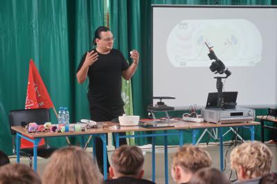 W dniach 2 - 3. października 2025 roku odbyła się XXVIII edycja Dolnośląskiego Festiwalu Nauki „Nauka jest chrobra”, podczas której uczniowie Szkoły Podstawowej nr 10 w Głogowie wzięli udział w różnorodnych zajęciach, m.in.: w wykładzie „Tajemnice dźwięku – psychoakustyka: zjawiska, które przeczą intuicji”, czy w seansie mobilnego planetarium Sfera Wiedzy. Dzieci obejrzały pokaz pt. „Mity – opowieści ukryte na niebie”, dzięki któremu poznały podstawowe zagadnienia astronomiczne i poszerzyły swoją wiedzę o kosmosie.