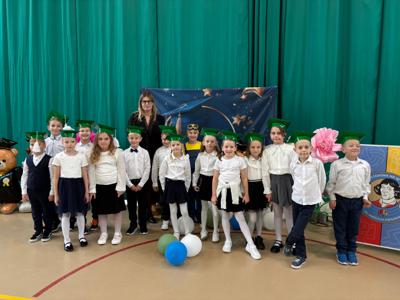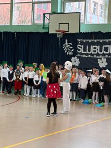 Uroczystość rozpoczęła się przemówieniem pani dyrektor Joanny Ołówek, która serdecznie powitała pierwszoklasistów w społeczności szkolnej i życzyła im wielu sukcesów w nauce. Następnie dzieci zaprezentowały przygotowany program artystyczny.