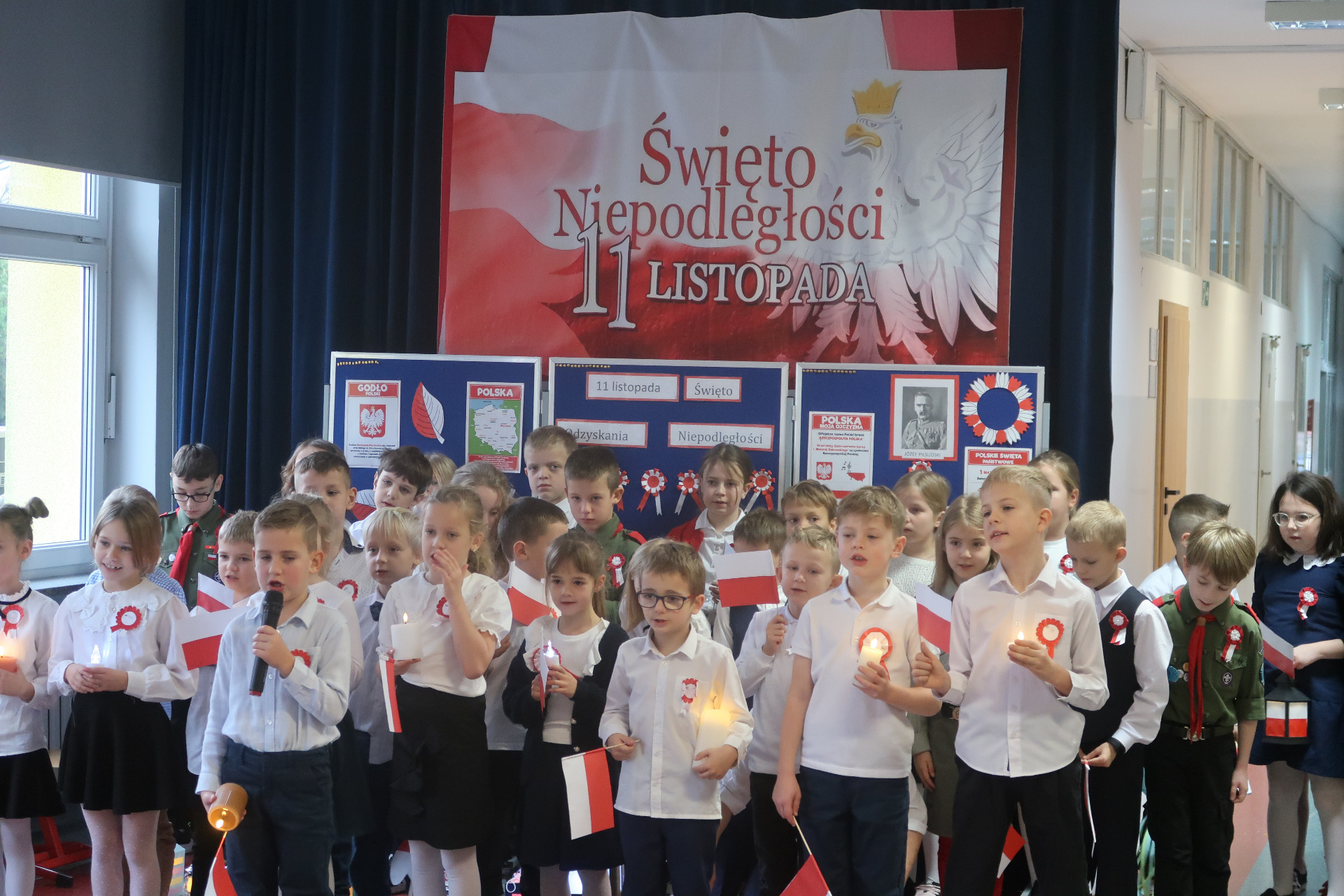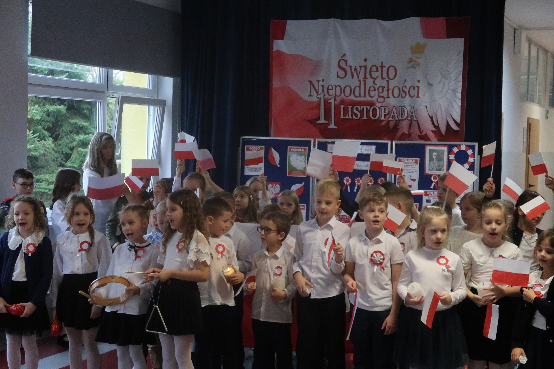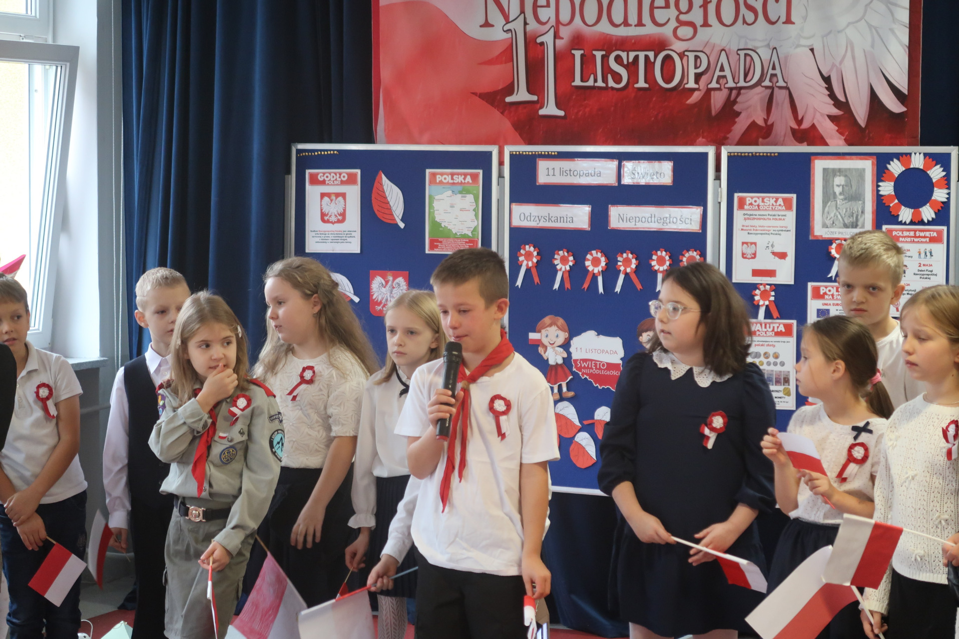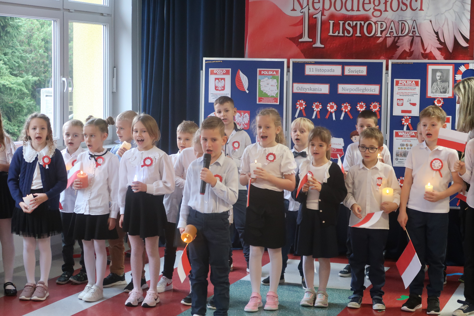 Dnia 10 listopada z okazji Narodowego Święta Niepodległości odbył się uroczysty apel klas 1-3. Podczas występu dzieci przypomniały ważne wydarzenia z historii Polski, recytowały wiersze i śpiewały pieśni patriotyczne. Wszyscy z dumą odśpiewali hymn narodowy, oddając hołd bohaterom, którzy walczyli o wolność naszej ojczyzny.
