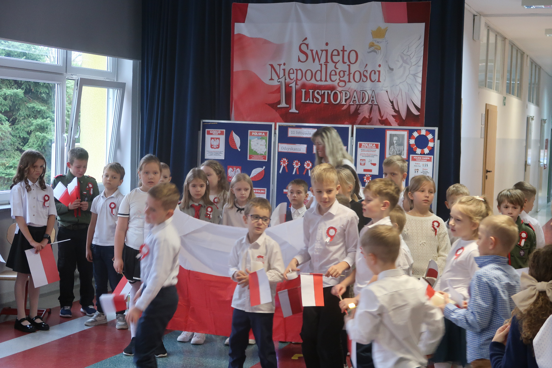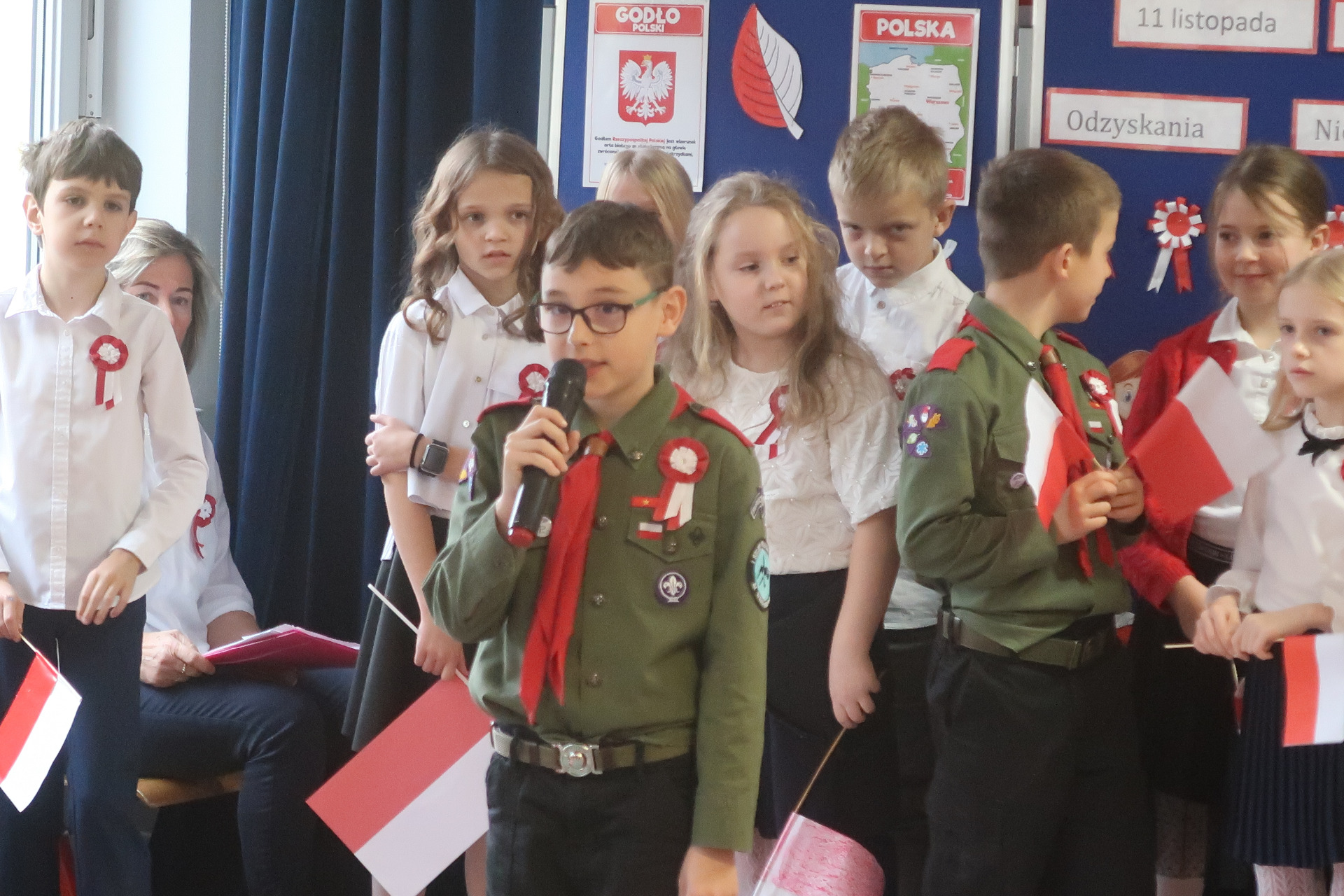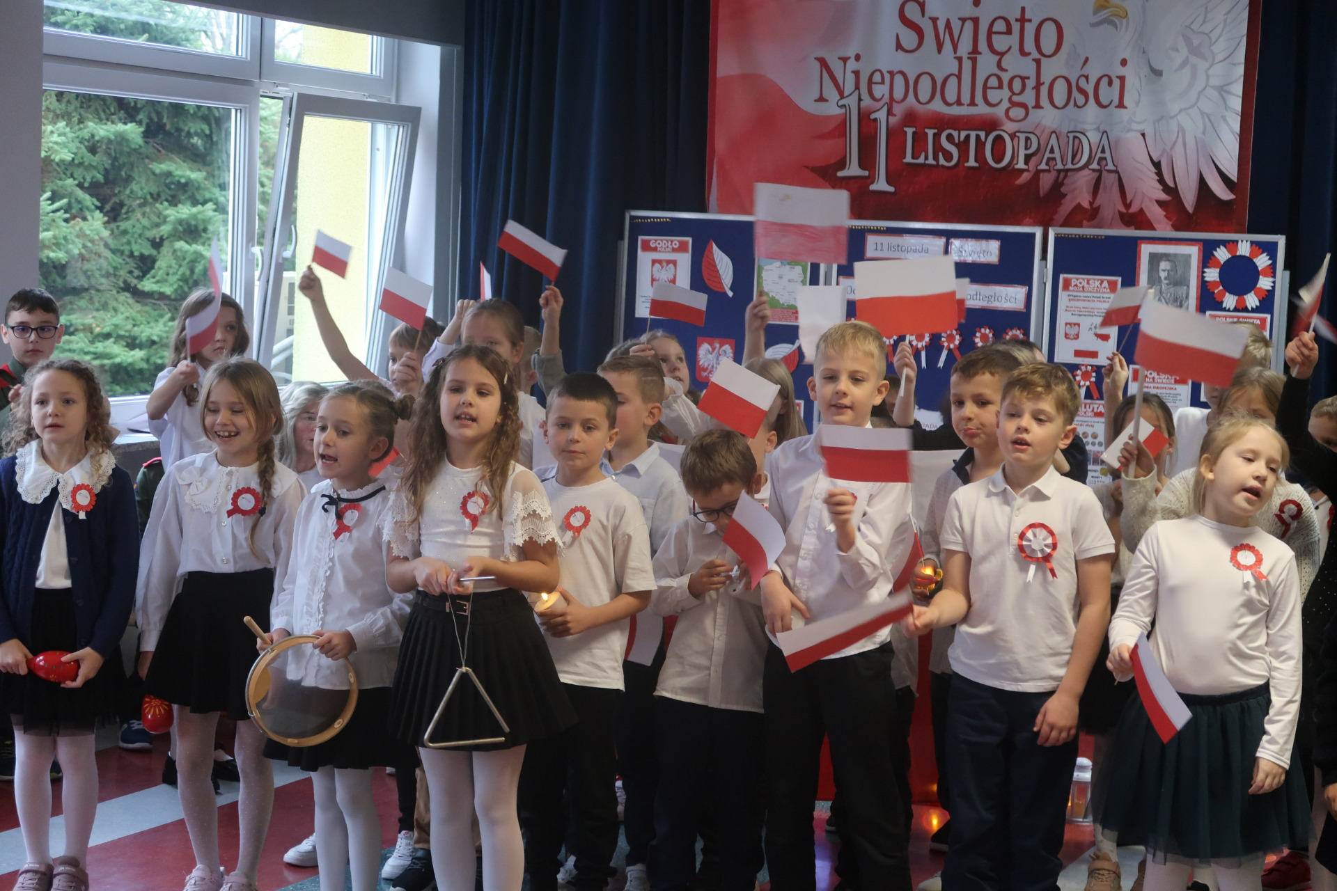 Dnia 10 listopada z okazji Narodowego Święta Niepodległości odbył się uroczysty apel klas 1-3. Podczas występu dzieci przypomniały ważne wydarzenia z historii Polski, recytowały wiersze i śpiewały pieśni patriotyczne. Wszyscy z dumą odśpiewali hymn narodowy, oddając hołd bohaterom, którzy walczyli o wolność naszej ojczyzny.