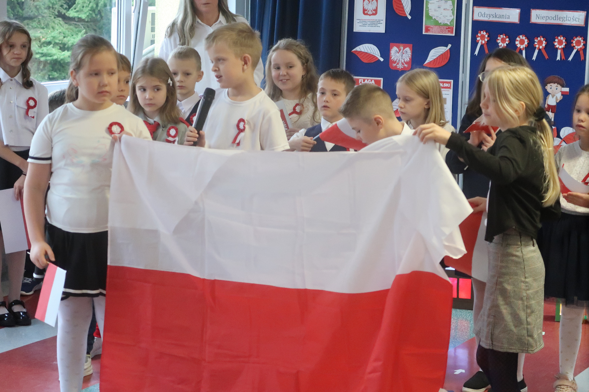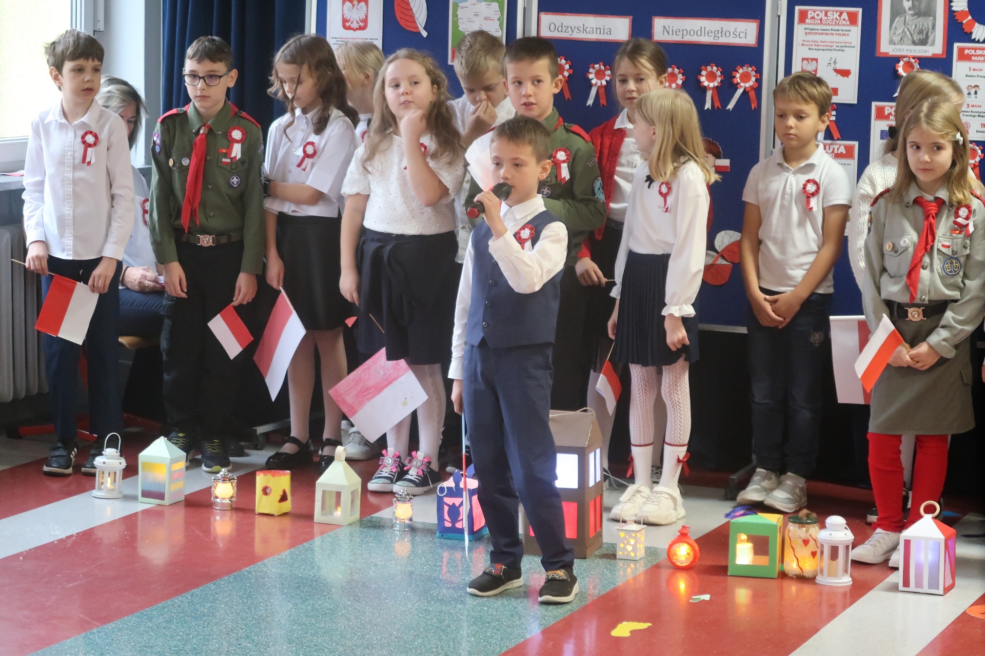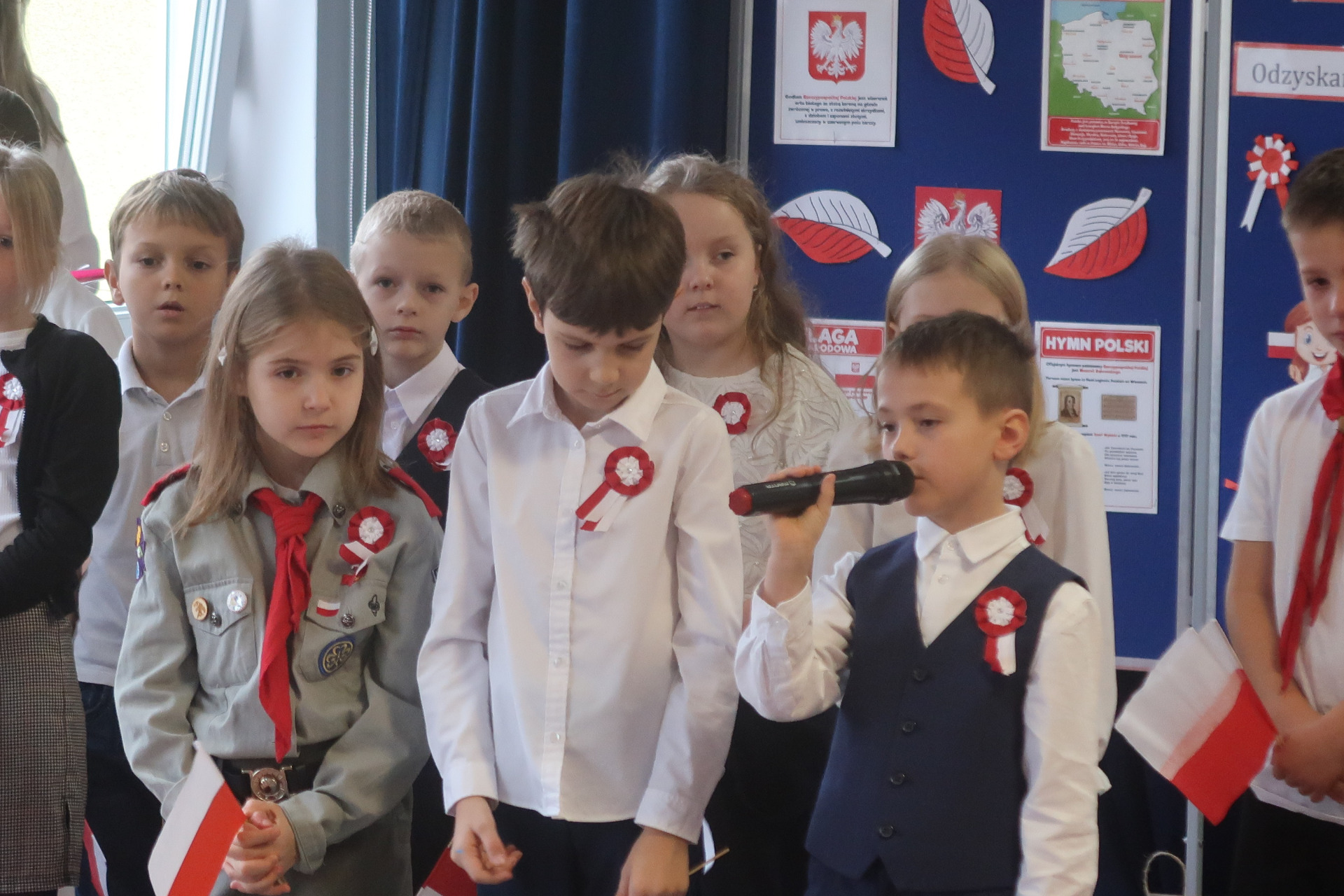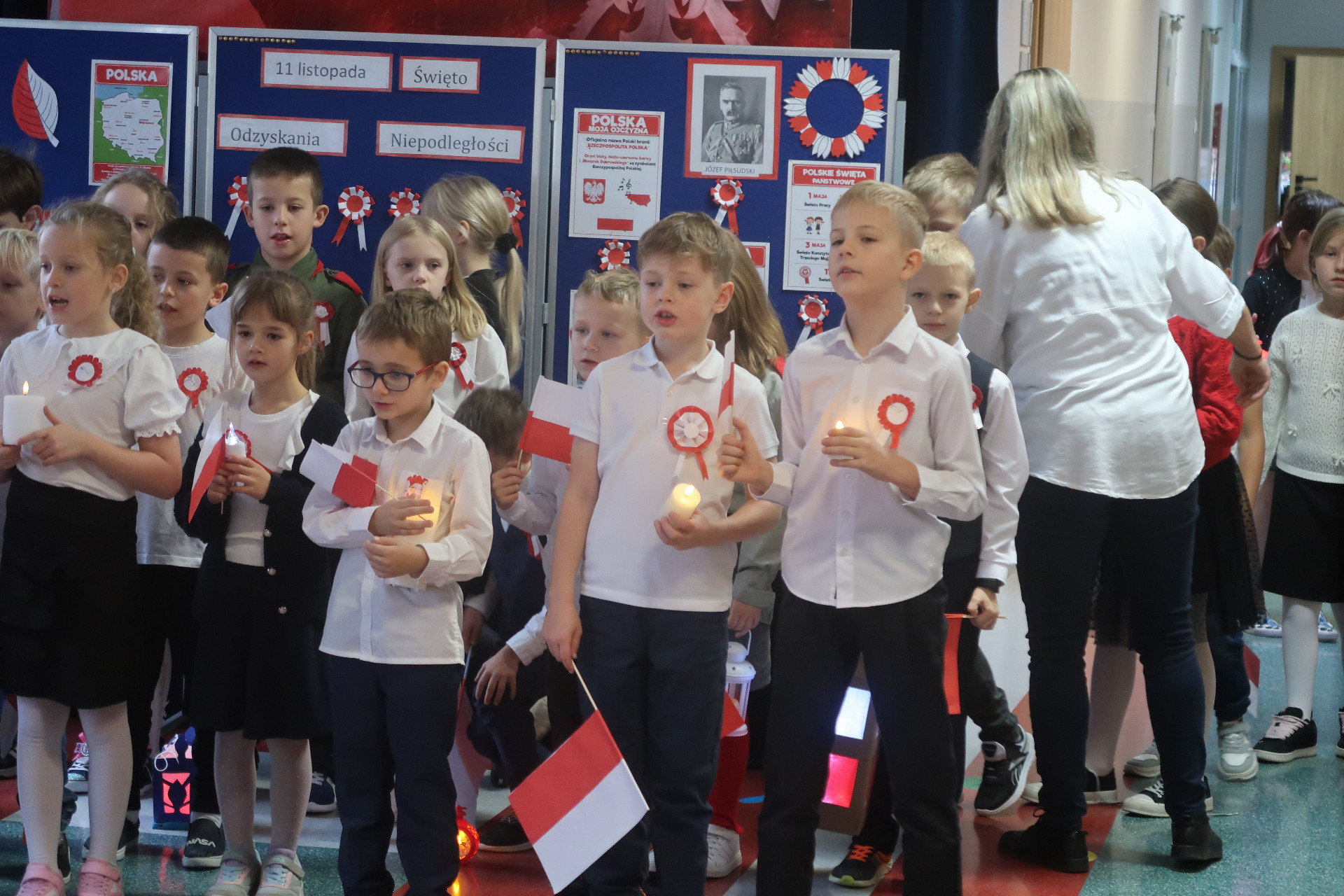 Dnia 10 listopada z okazji Narodowego Święta Niepodległości odbył się uroczysty apel klas 1-3. Podczas występu dzieci przypomniały ważne wydarzenia z historii Polski, recytowały wiersze i śpiewały pieśni patriotyczne. Wszyscy z dumą odśpiewali hymn narodowy, oddając hołd bohaterom, którzy walczyli o wolność naszej ojczyzny.