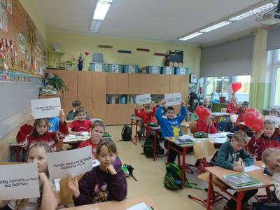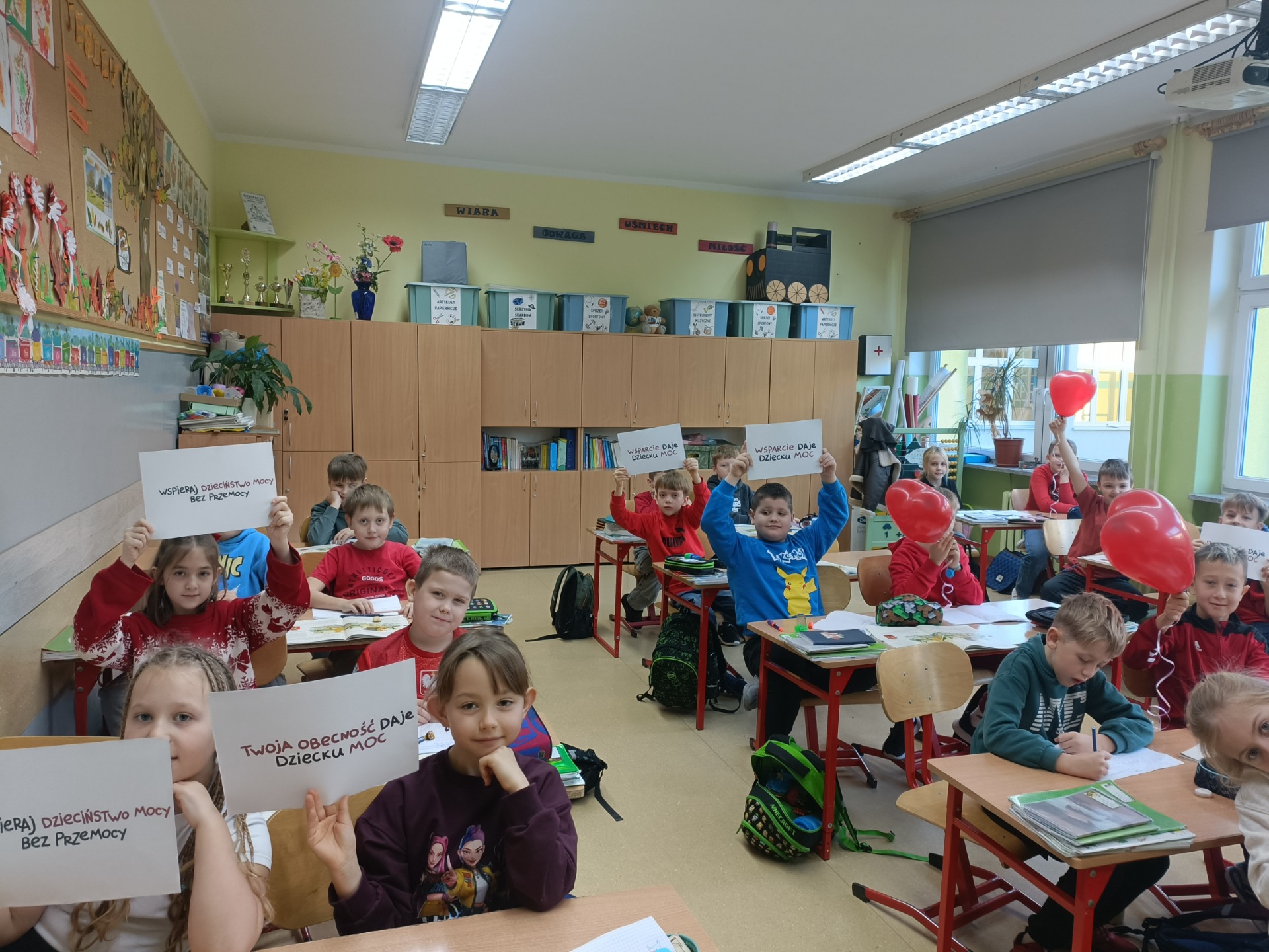Nasza Szkoła aktywnie uczestniczyła w kampanii „Dzieciństwo bez Przemocy” organizowanej przez Fundację Dajemy Dzieciom Siłę oraz Krajową Koalicję na rzecz Ochrony Dzieci, której głównym celem jest zapobieganie krzywdzenia dzieci. Kolorem kampanii jest kolor czerwony, dlatego na naszych korytarzach królował właśnie ten kolor. W dniu finału odbyło się także rozstrzygnięcie konkursu „W Internecie serfuję – nie hejtuję”. Zwieńczeniem akcji było podświetlenie budynku na znak sprzeciwu wobec krzywdzenia dzieci.