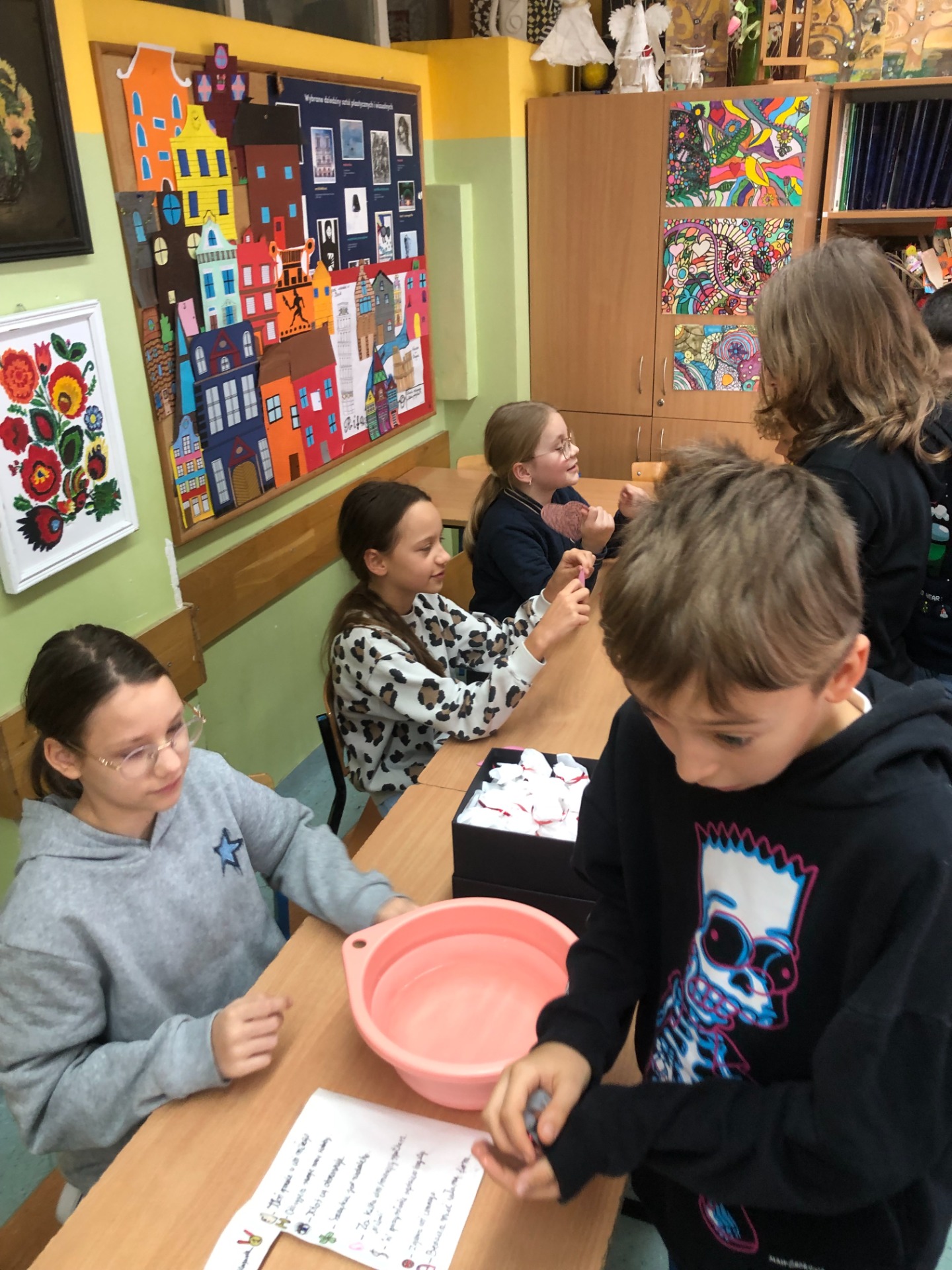 Uczennice kasa 4c z okazji nadchodzących andrzejek przygotowały samodzielnie wykonane wróżby dla swoich koleżanek i kolegów z klasy, które przeprowadziły podczas godziny wychowawczej. Lekcja przebiegała w radosnej atmosferze pełnej tajemniczości i ciekawości. Wróżby andrzejkowe to tradycyjne zabawy, najczęściej związane z przepowiadaniem przyszłości, które odbywają się w noc z 29 na 30 listopada. Najpopularniejsze wróżby to lanie wosku przez klucz do zimnej wody, wróżenie z butów (kolejka do drzwi) oraz wróżba z jabłka, w której po obraniu skórki rzuca się ją za siebie i patrzy, na jaką literę się ułoży.