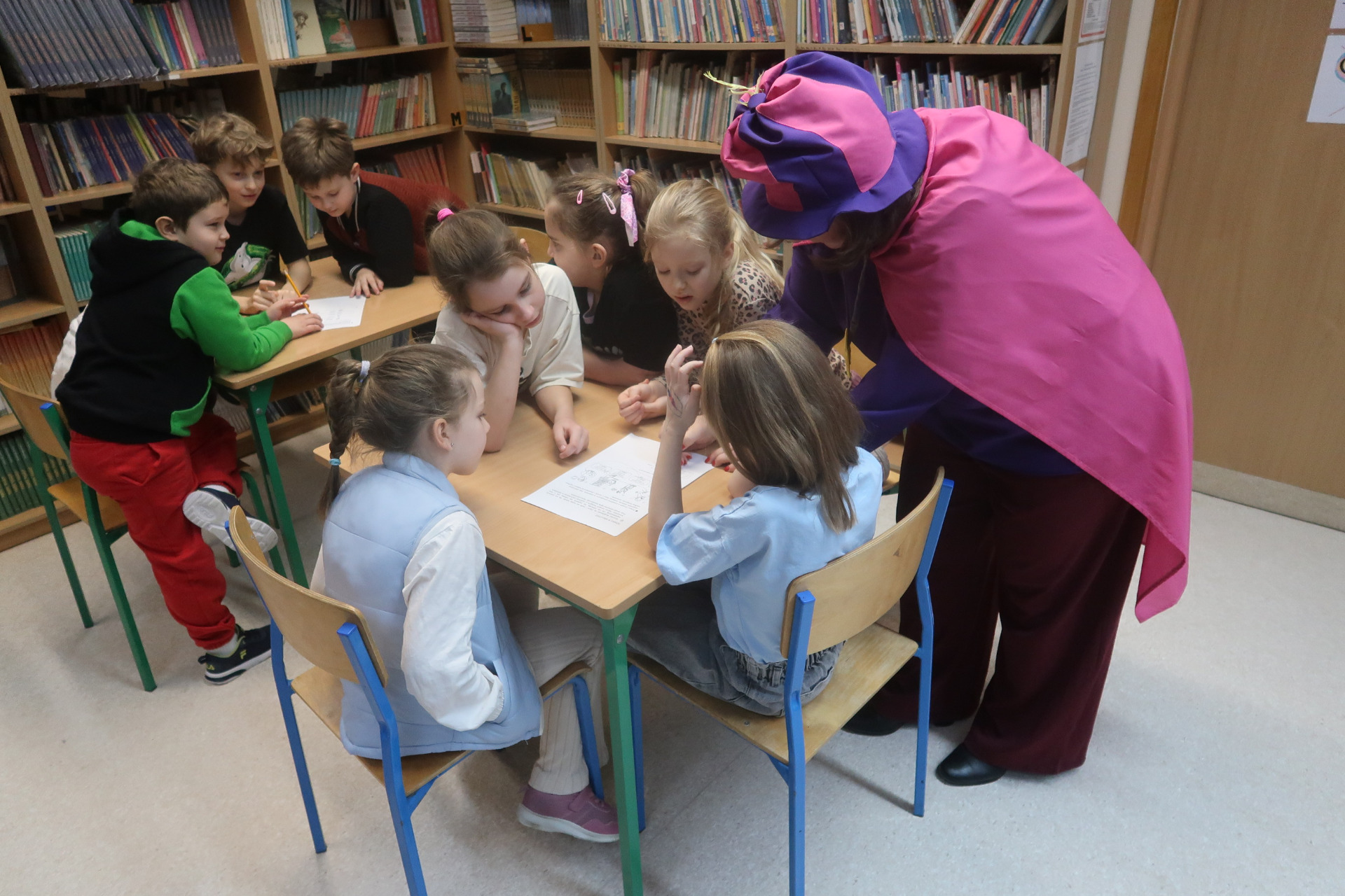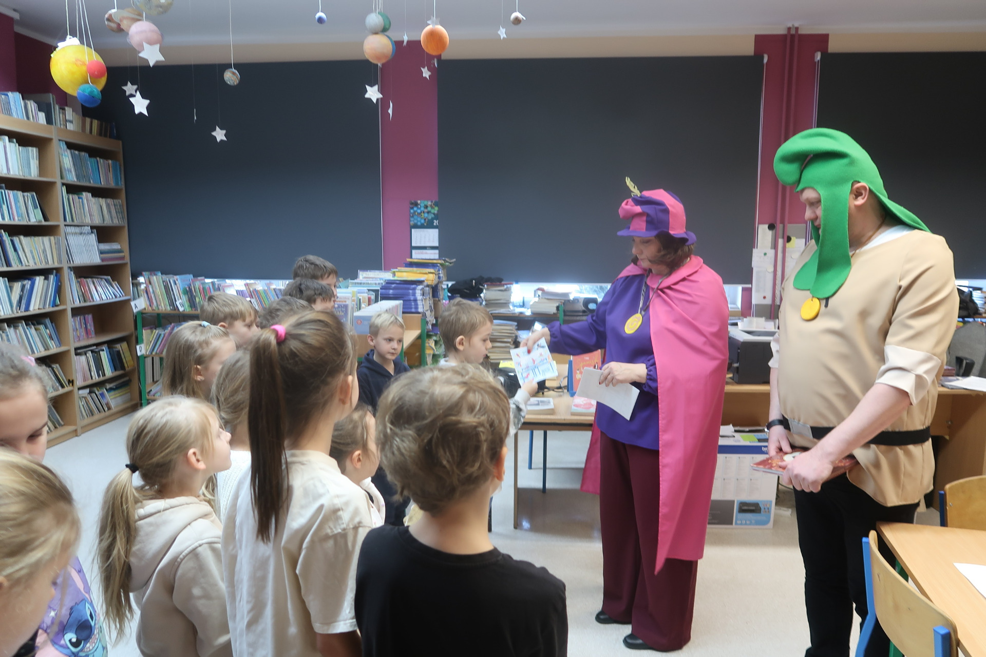 W naszej szkolnej bibliotece odbyło się pasowanie uczniów klas pierwszych na czytelników. Dzieci wysłuchały magicznego opowiadania „Wypożyczalnia skrzydeł” i wzięły udział w zabawnych zadaniach związanych z regulaminem biblioteki.